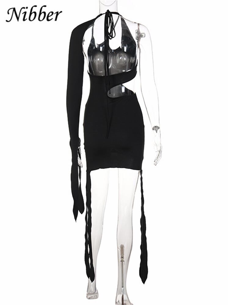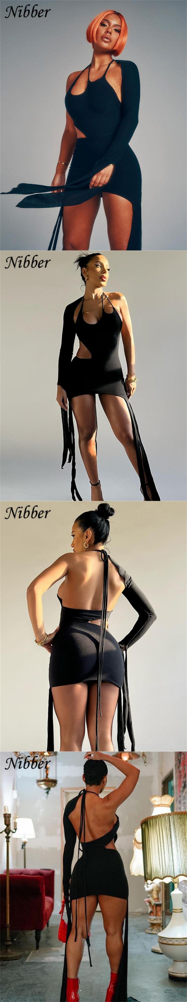 Nibber ドレス女性ソリッドセクシーなカットアウト傾斜ショルダードレスフリンジワンショルダースリーブミニドレスミッドナイトパーティーウェア