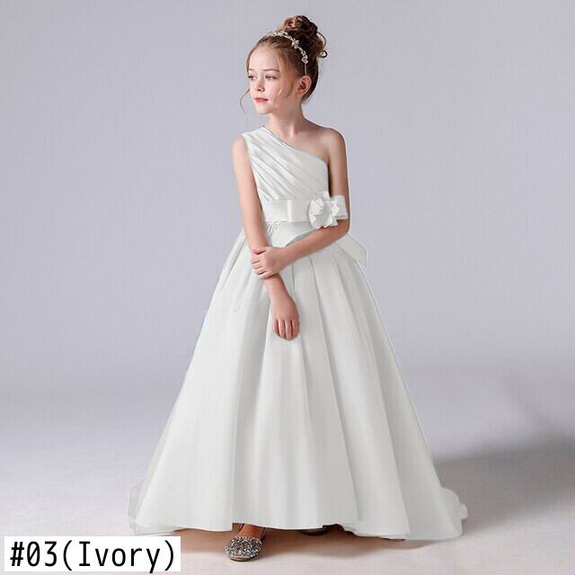Dideyttawl ワンショルダーガールドレスウェディングパーティー夜会服サテンプリーツジュニアコンサート誕生日