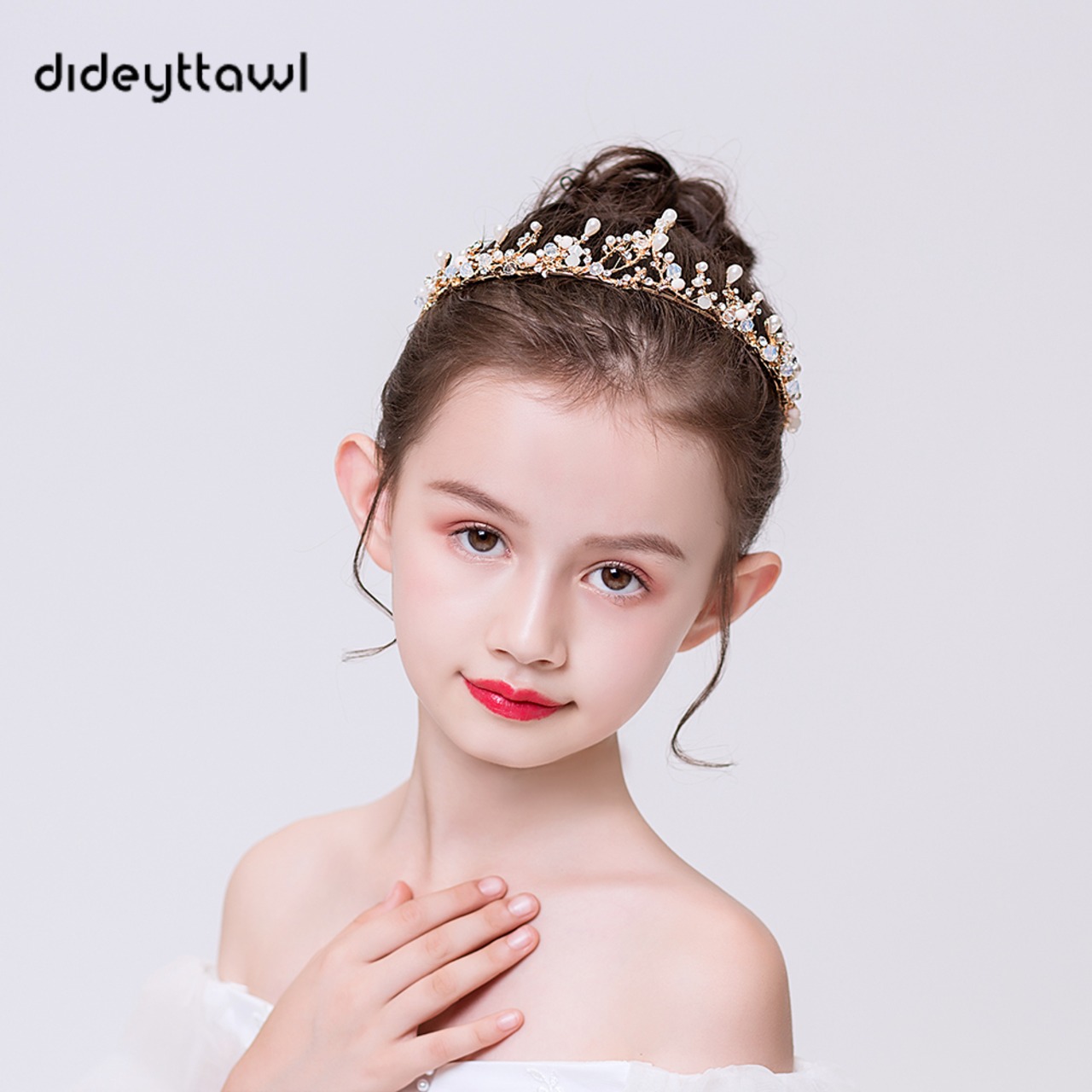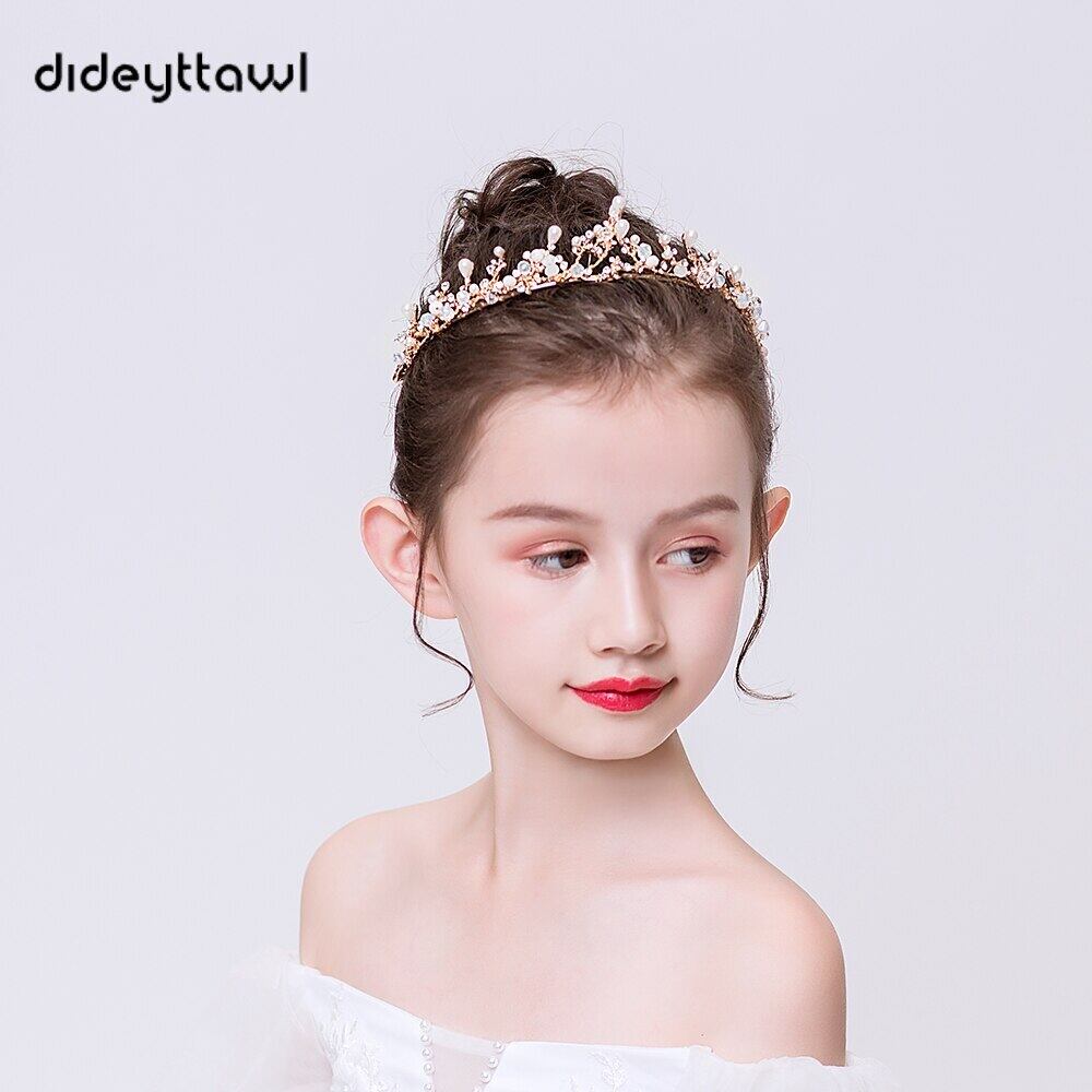 Dideyttawl パールメタルティアラガールズヘッドウェアキッズヘッドバンドクラウンジュニアコンサート誕生日ヘアアクセサリー