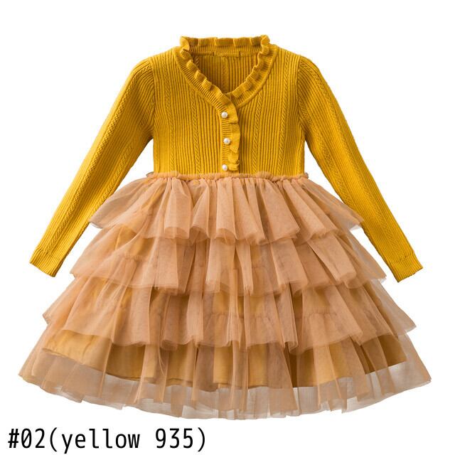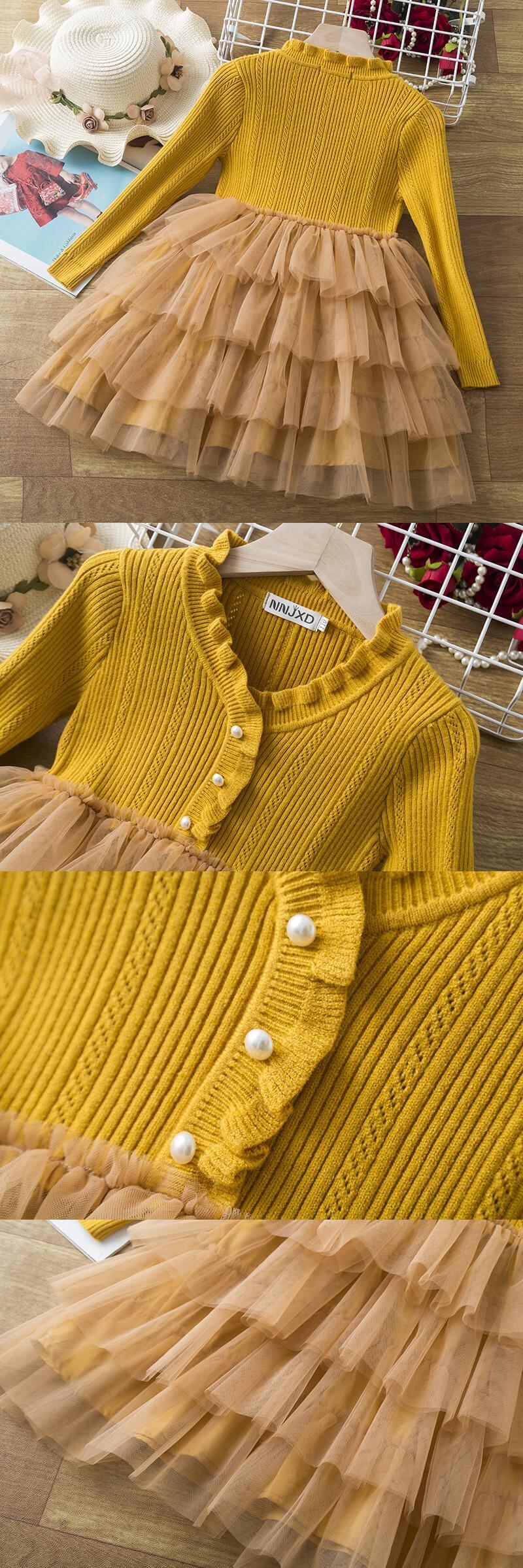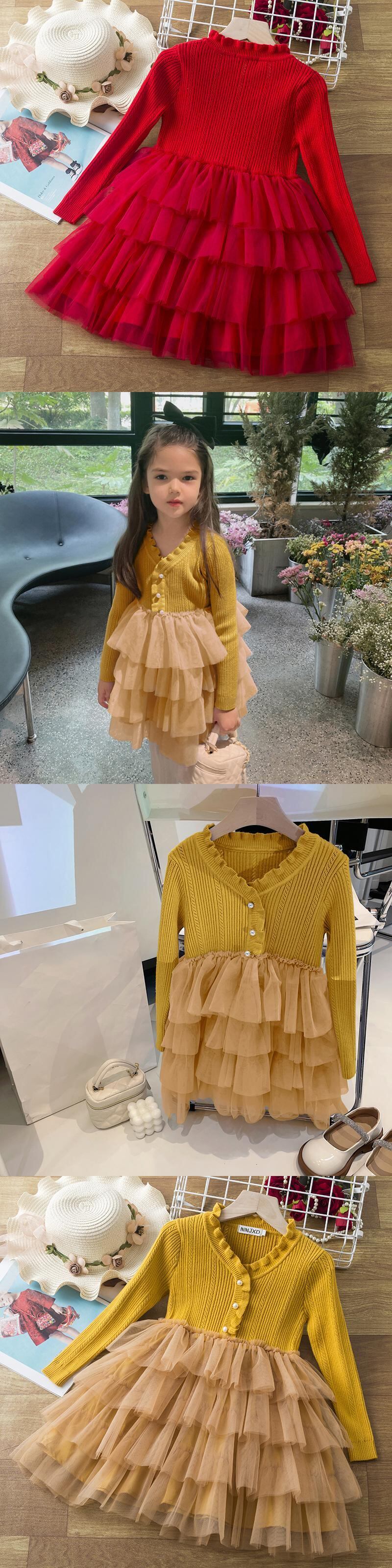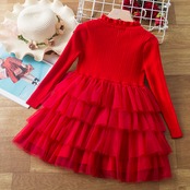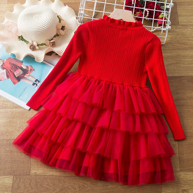 レッドパーティードレスガール秋/冬暖かいニット長袖誕生日ケーキ服子供年クリスマス幼児ドレス