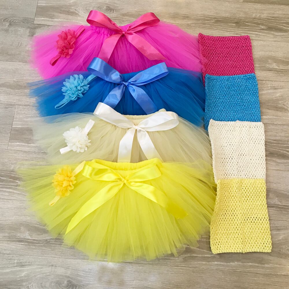 女の赤ちゃんふわふわナイロンチュールチュチュドレスかぎ針編みのチュチュトップと花のカチューシャパーティー誕生日 Po 小道具
