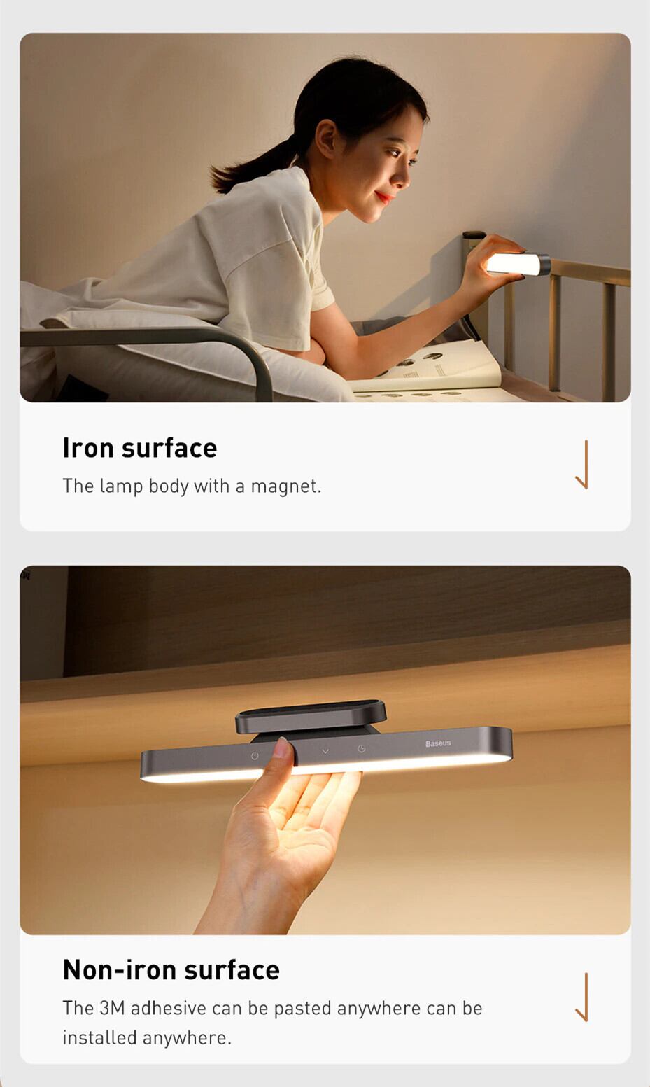 Baseusナイトライトぶら下げ磁気LEDテーブルランプ無段階調光デスクランプ充電式キャビネットライト寝室キッチン