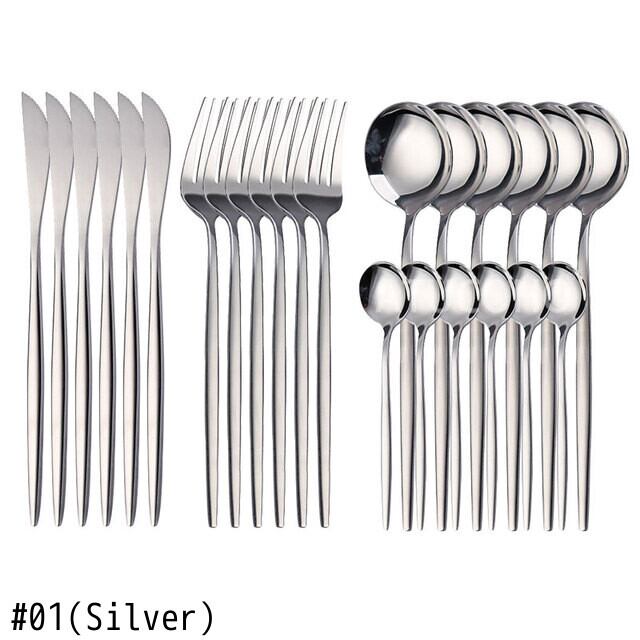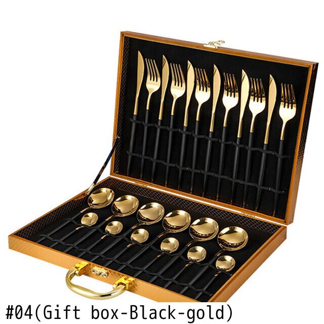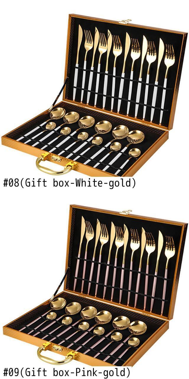 24 個カトラリーセットステンレスナイフ 18k スプーン食器食器セットゴールドギフトボックスポータブル食器食器洗い機台所用品