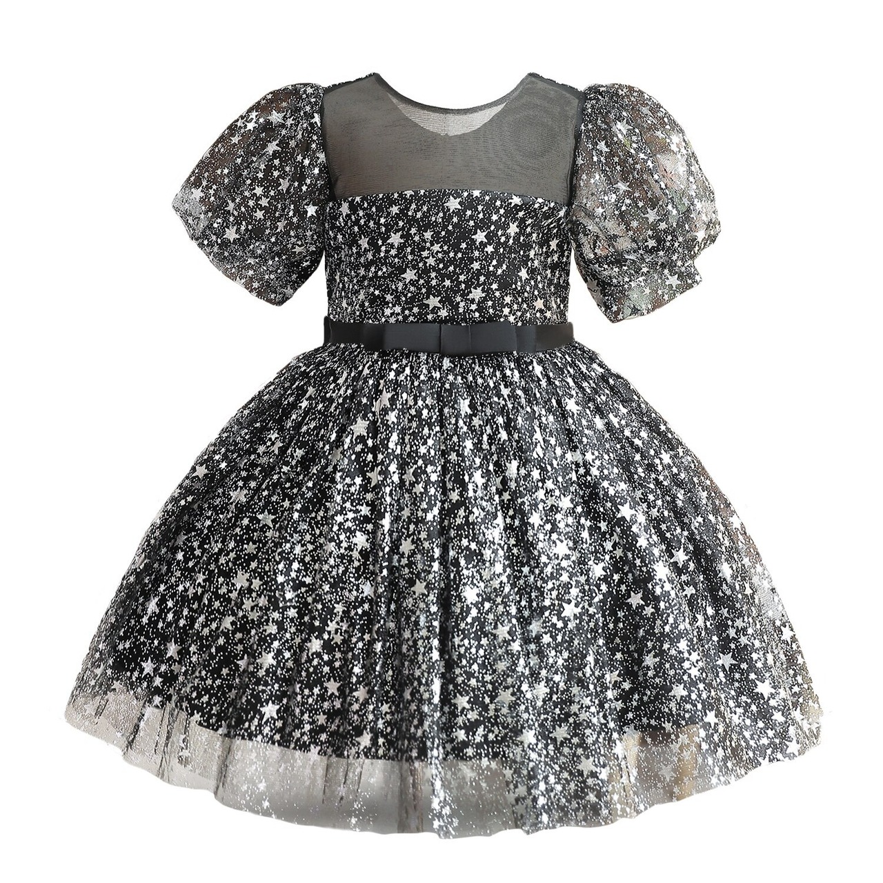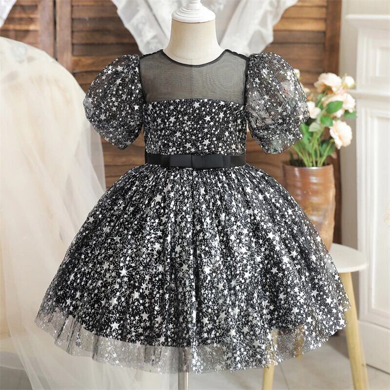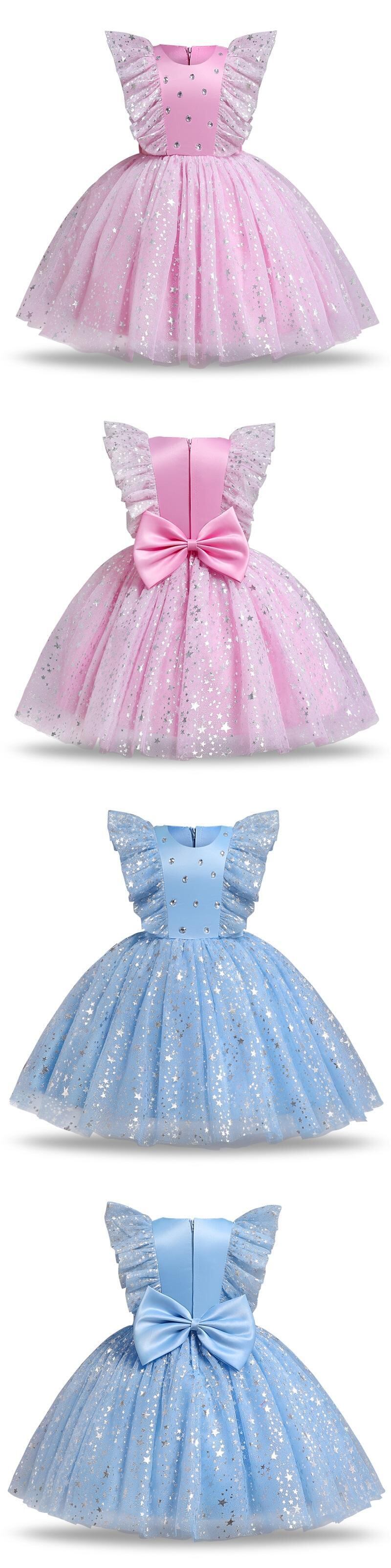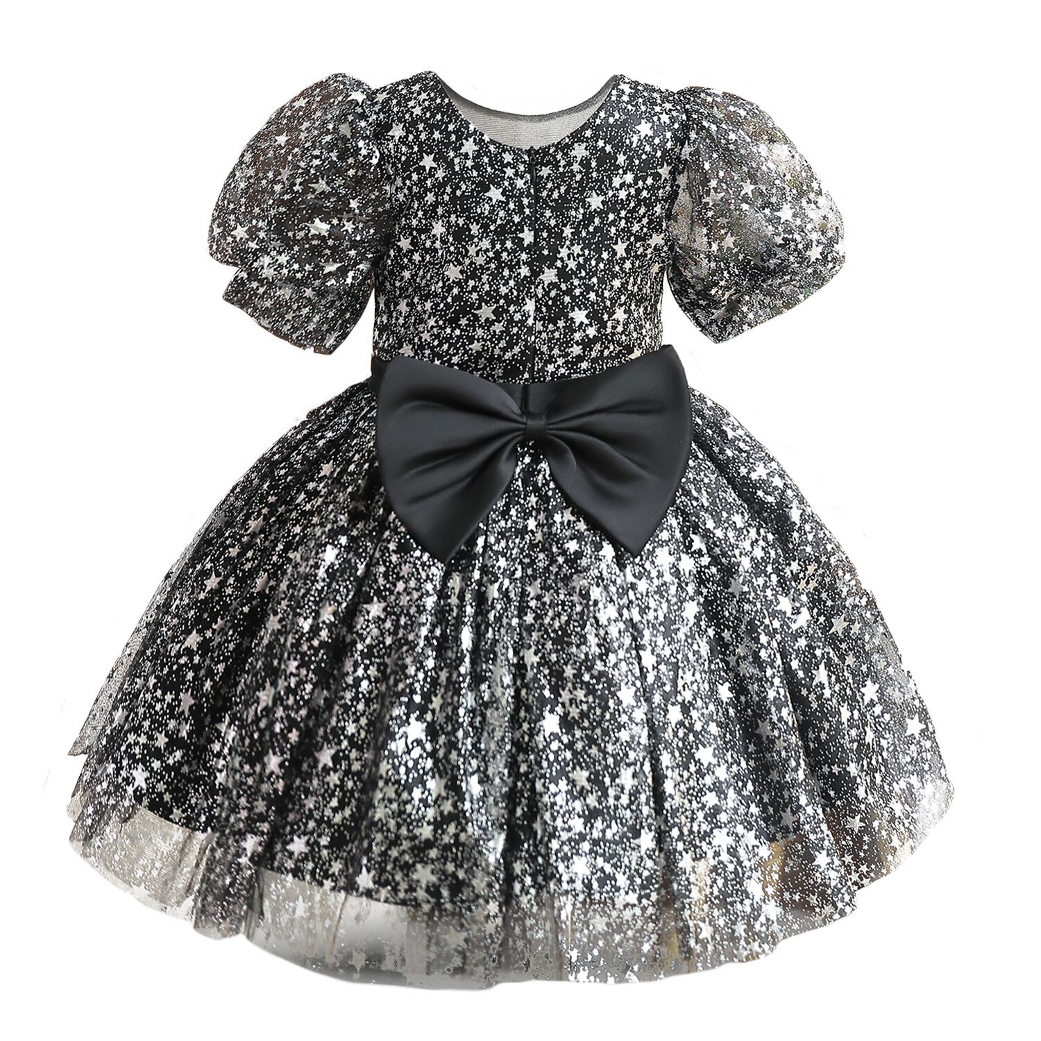 フリルベビー誕生日服女の子スパンコールウェディングパーティーイブニングドレス弓かわいい幼児キッズウエディングドレス