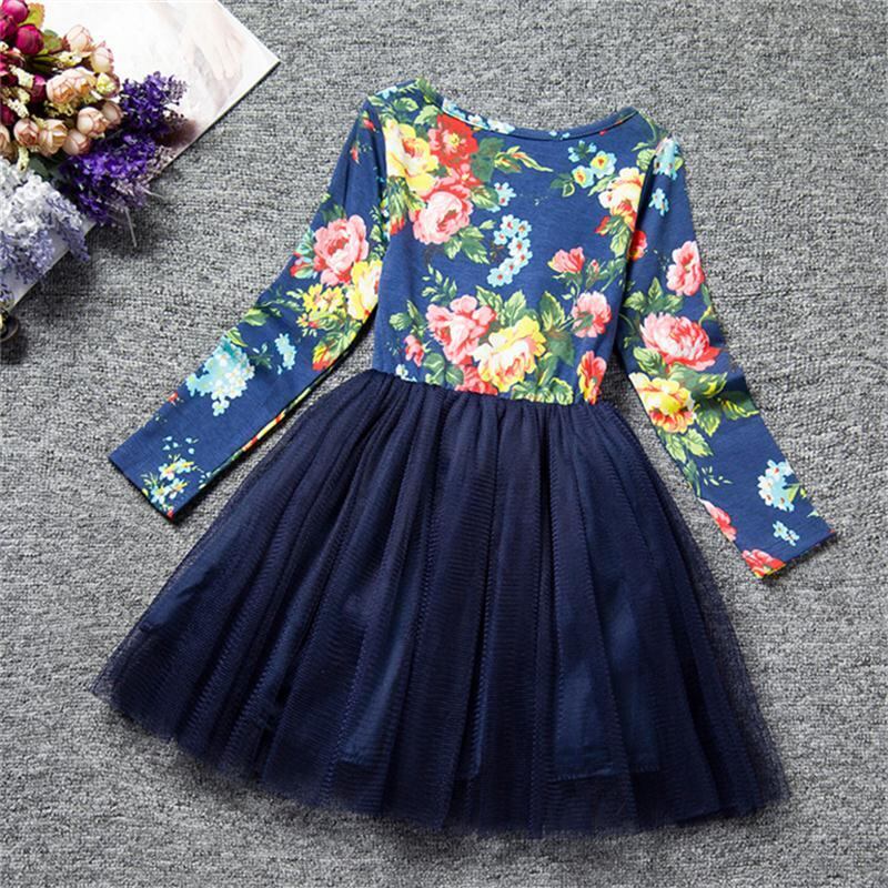 ヴィンテージフラワーガールドレス春秋長袖キッズ誕生日パーティーガウン 3-8 歳の子供