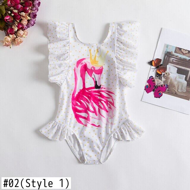 女の赤ちゃんの夏のワンピース水着子供海辺の休日フラミンゴプリント水着 24 メートル 3 4 歳かわいい漫画水泳ビーチウェア