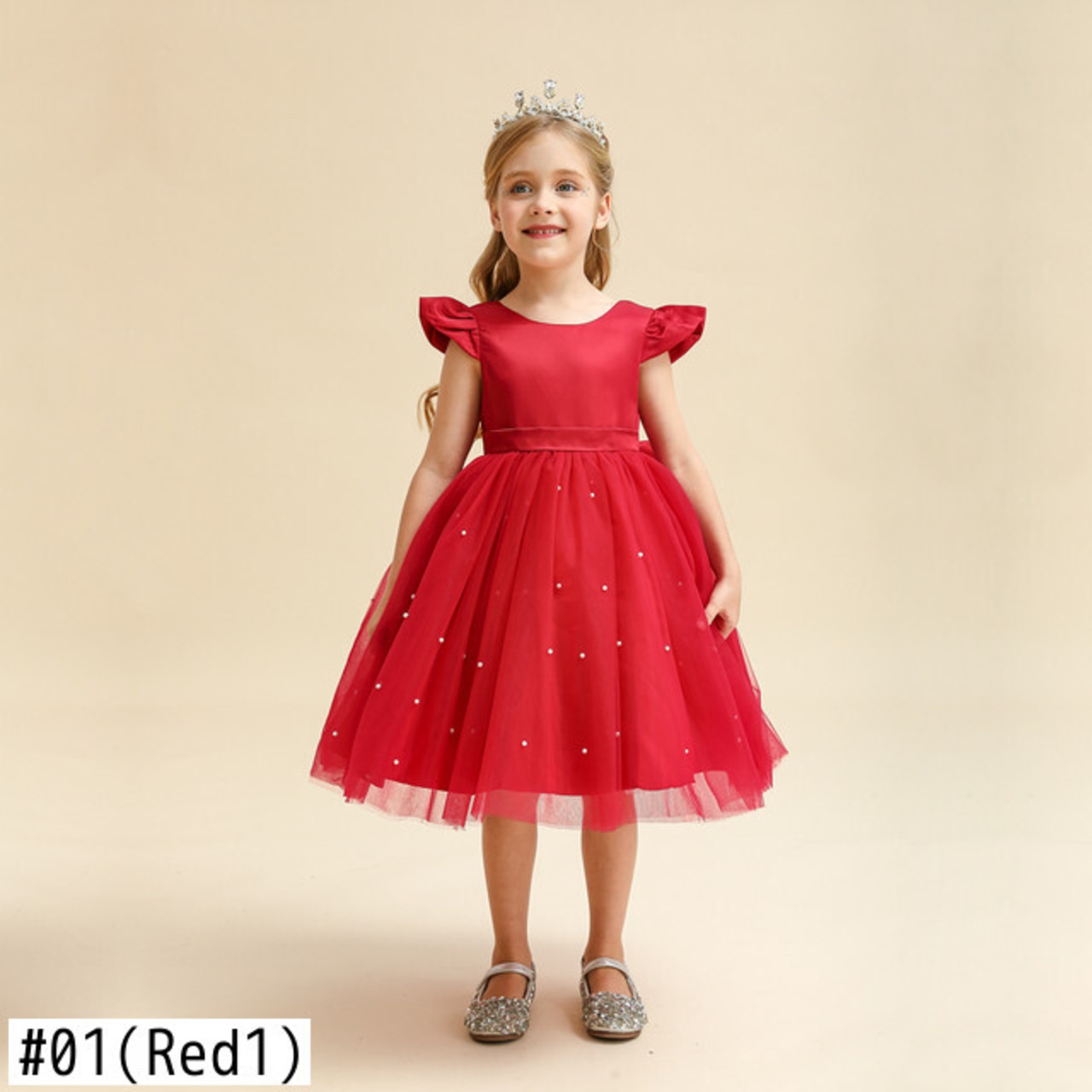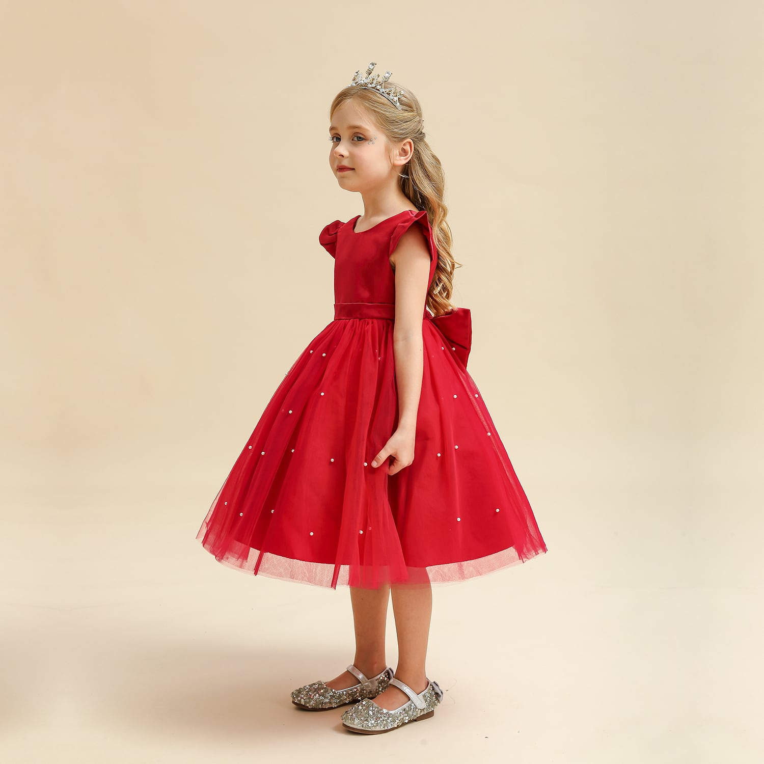 ベビーパーティードレス女の子幼児の誕生日ウエディングドレスチュール子供 Vestidos ウェディングドレスレッドガールクリスマスドレス 1-5Y