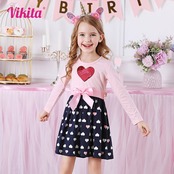VIKITA 長袖コットンドレスガールズドレス女の赤ちゃん服弓ノットパーティースパンコールドレスガール服