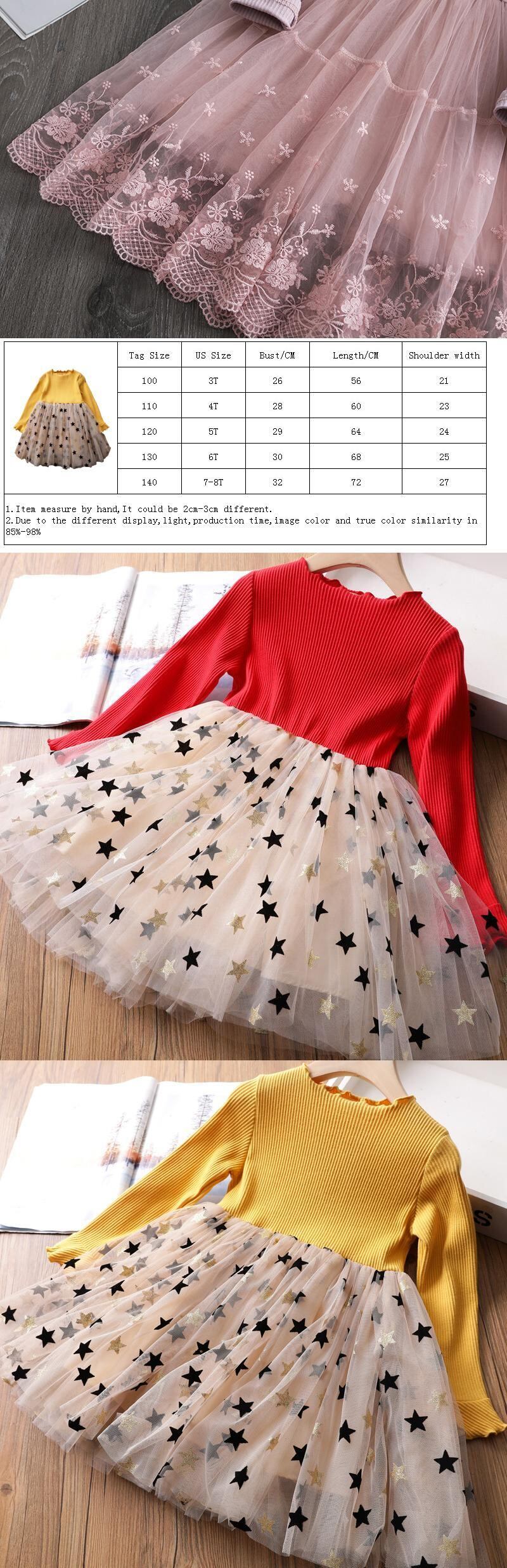 女の子フラワードレス秋/冬長袖ニット服キッズ誕生日イブニングパーティーレースドレス年齢 3 6 8