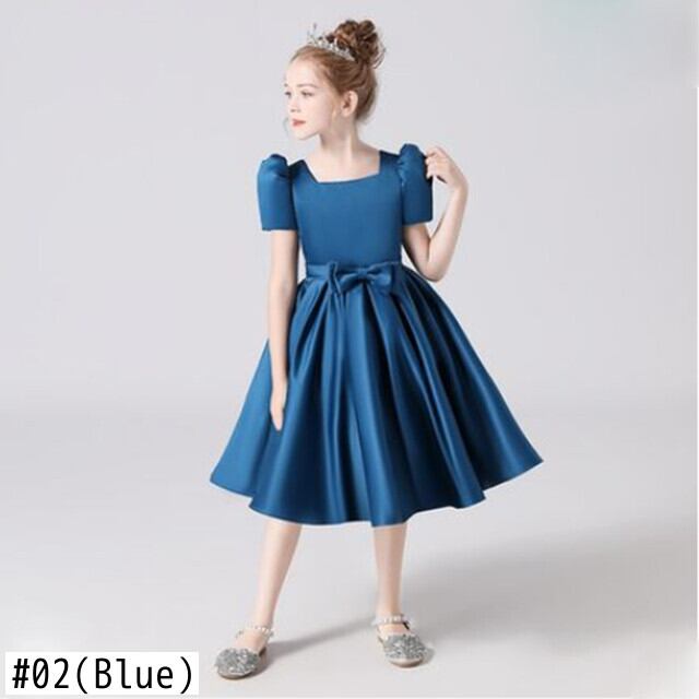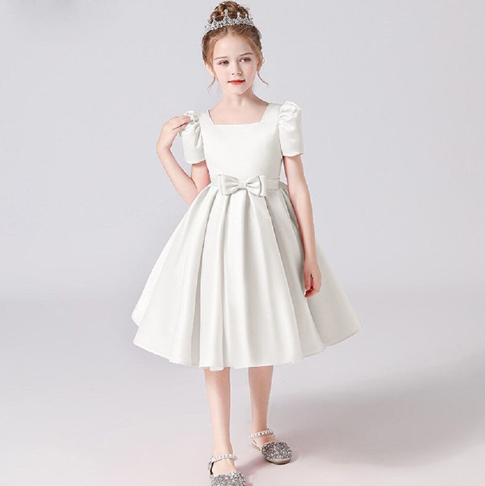 Dideyttawl リアル ポス サテン ショート フラワー ガール ドレス スクエア カラー 初聖体 キッズ 誕生日 コンサート パーティー ジュニア ブライズメイド