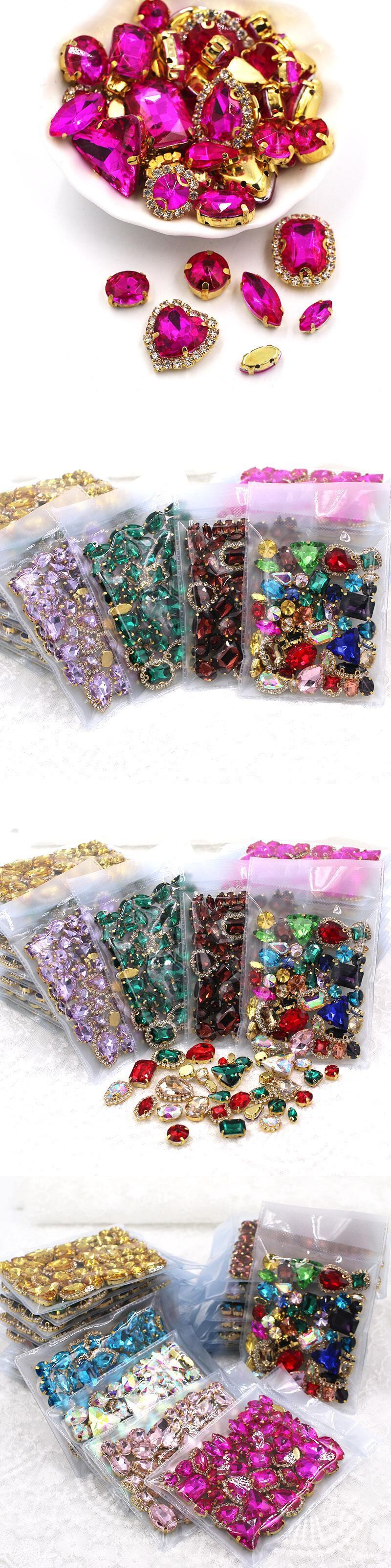 50 ピース/バッグ光沢のある 10 色混合形状 Gl ラインストーンゴールド爪クリスタルバックル Diy の結婚式の装飾の服/靴/ドレス