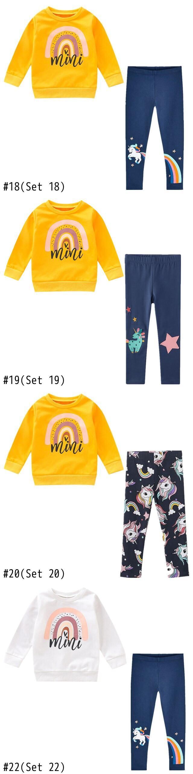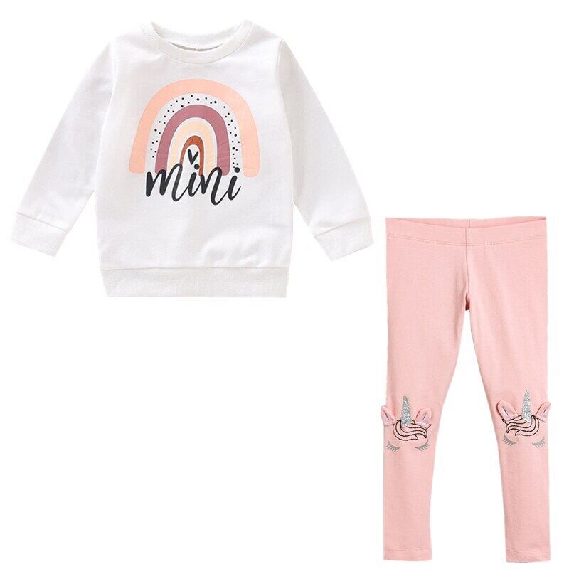 幼児の女の赤ちゃん服セット冬長袖レインボープリント Tシャツ + ユニコーンパンツ子供服子供トラックスーツ
