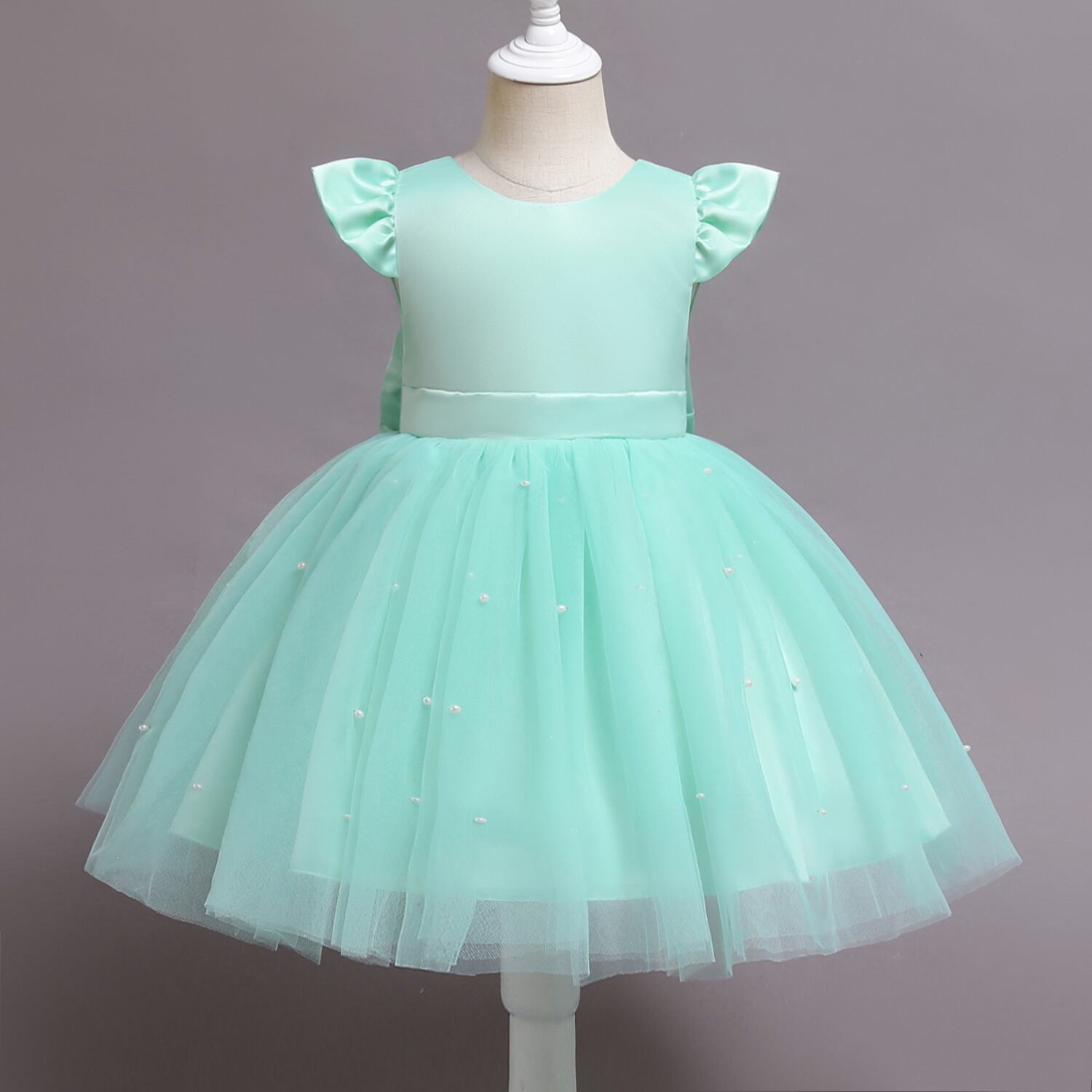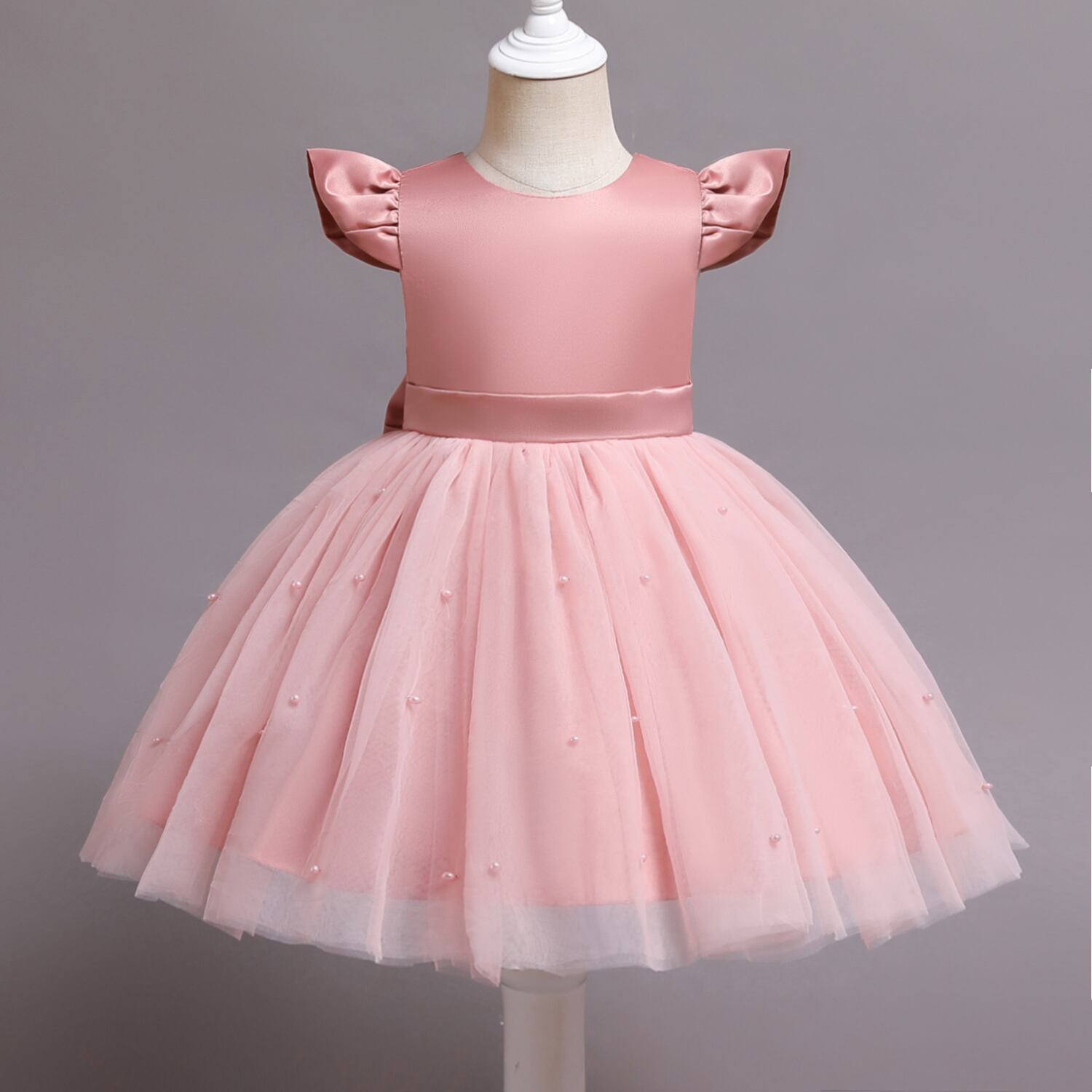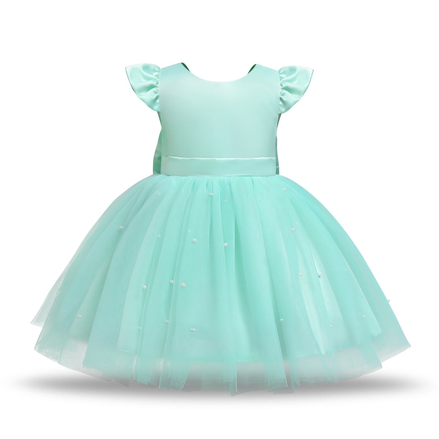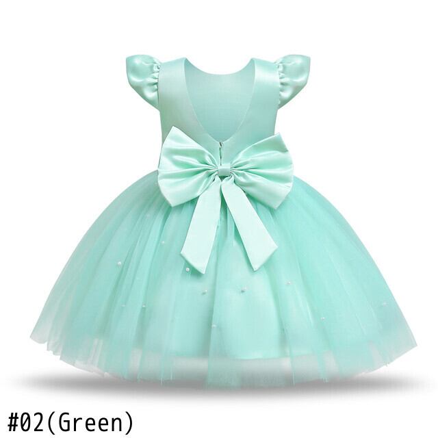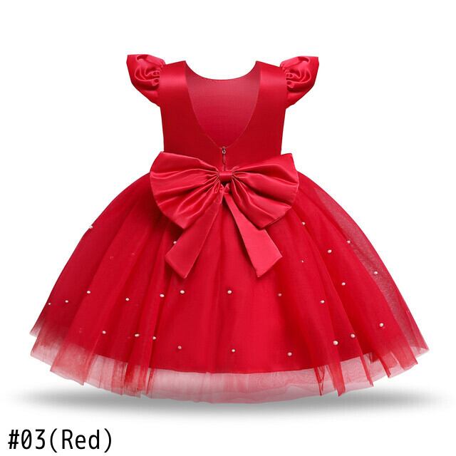 幼児の女の赤ちゃん 1st 誕生日ドレス V バック弓パーティーのウェディングドレス子供フリル子供チュチュガウン