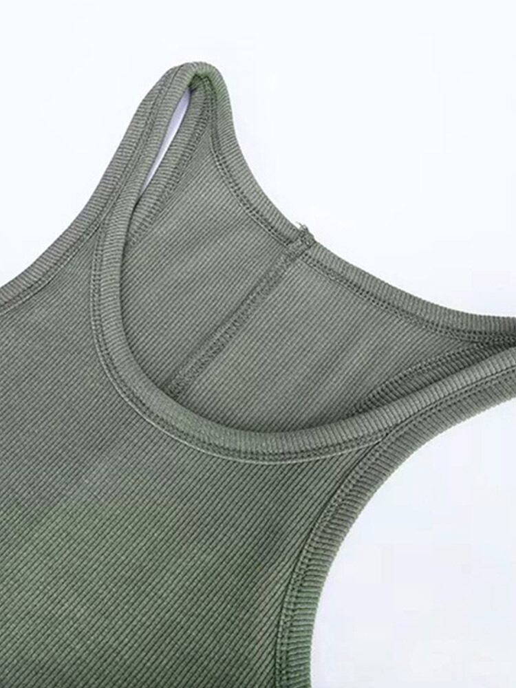 無地ベーシックリブニットタンクトップ女性の夏のヴィンテージノースリーブキャミソール 90 s クールガールズストリートグリーンソフト Tシャツ