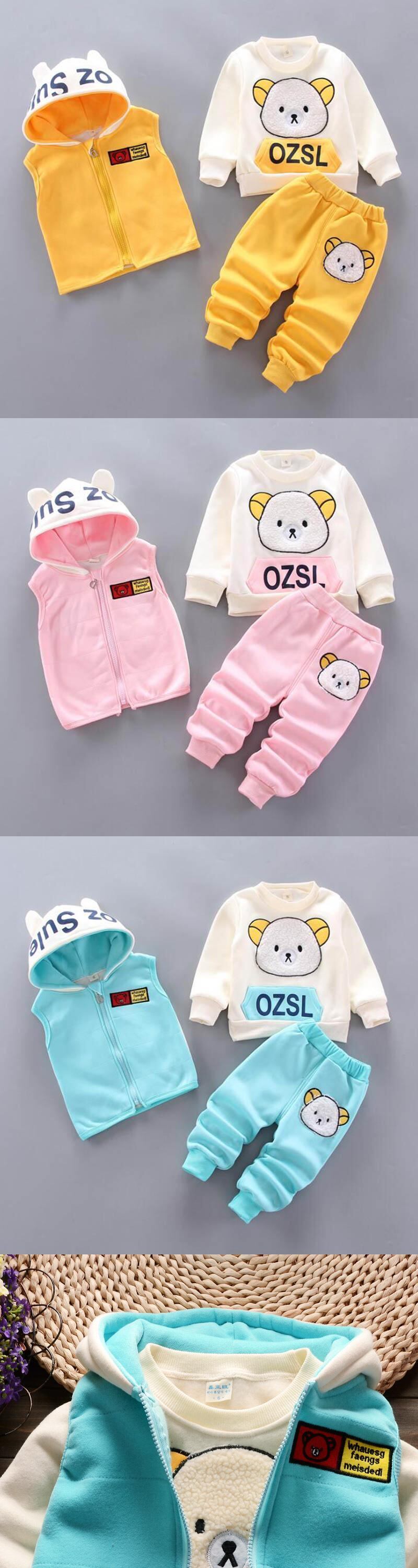 赤ちゃん男の子と女の子セットトリッケンフリース子供フード付き上着トップスパンツ 3 個衣装子供幼児暖かいスーツ