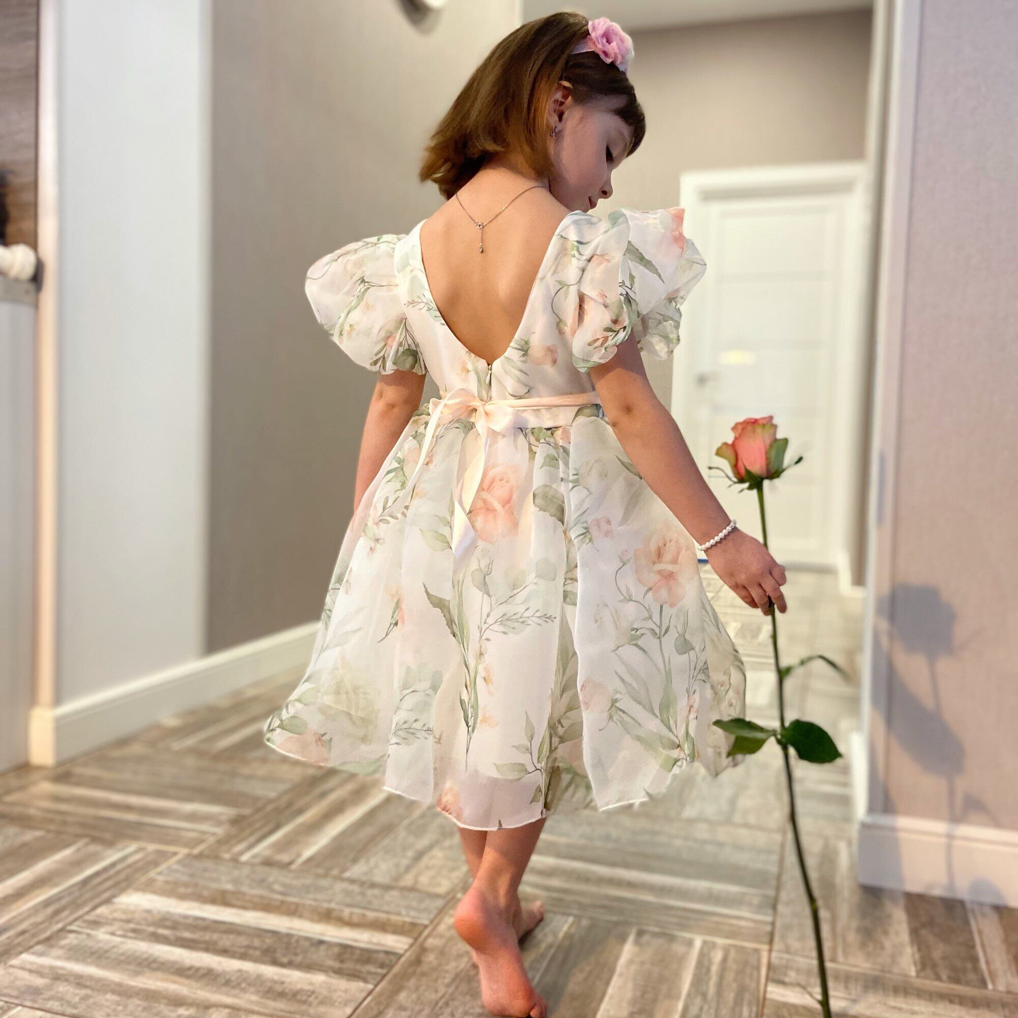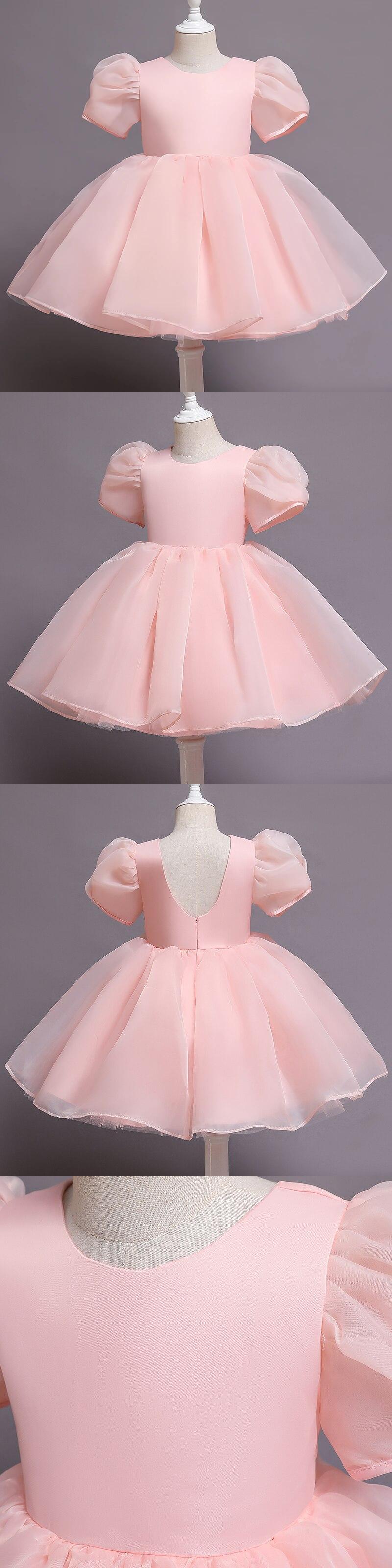 女の子のパーティードレス子供花背中の開いたウェディング異教ガウンパフスリーブ誕生日子供サマードレス