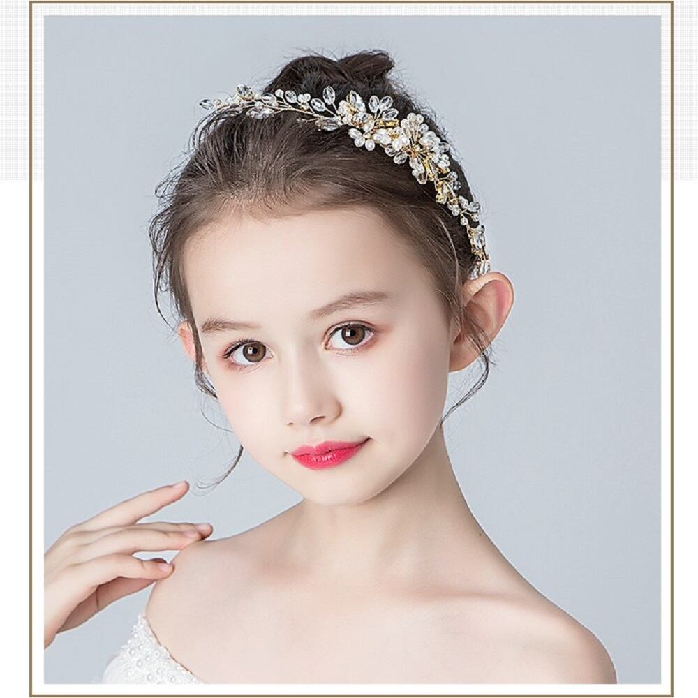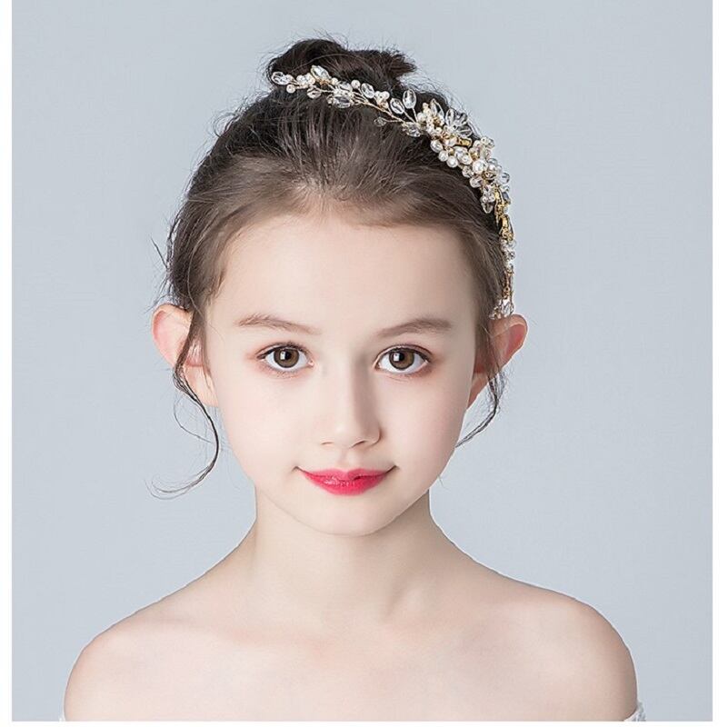 Dideyttawl 女の子帽子結婚式金属ラインストン子供ヘッドバンドビーズジュニア花嫁介添人誕生日ヘアアクセサリー