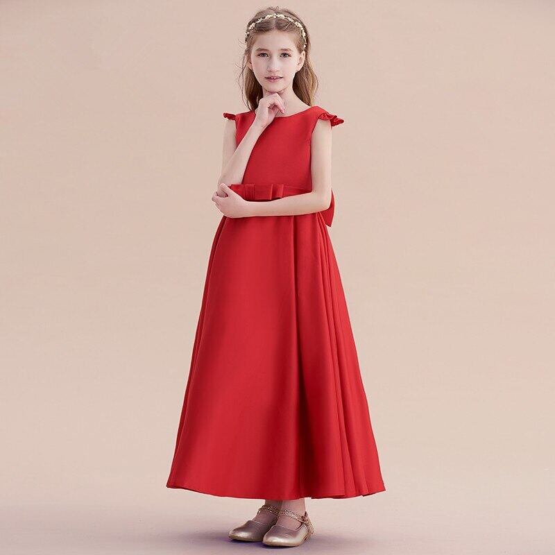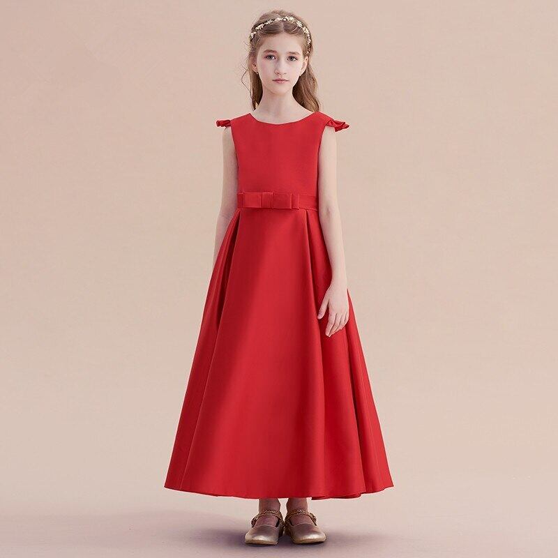 Dideyttawl レッド サテン ガールズ ドレス マル イブニング 誕生日 パーティー Aライン くるぶし丈 ジュニア コンサート ガウン シンプル