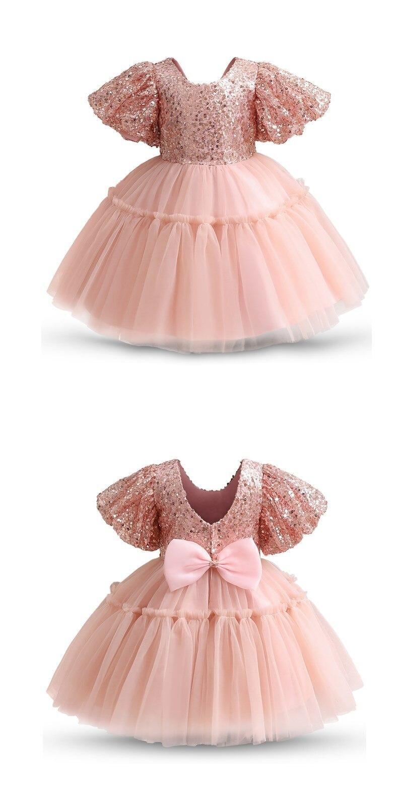 スパンコール子供パーティードレスガールレッドパフスリーブ誕生日結婚式マルイブニングガウン子供セレモニードレス