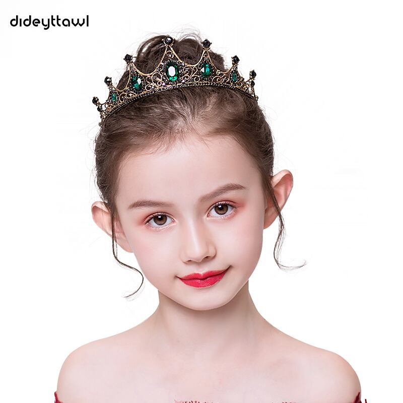 Dideyttawl メタルグリーンクリスタルガールズクラウンキッズウェディングティアラ王冠ジュニア花嫁介添人ヘアアクセサリー