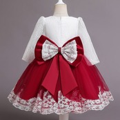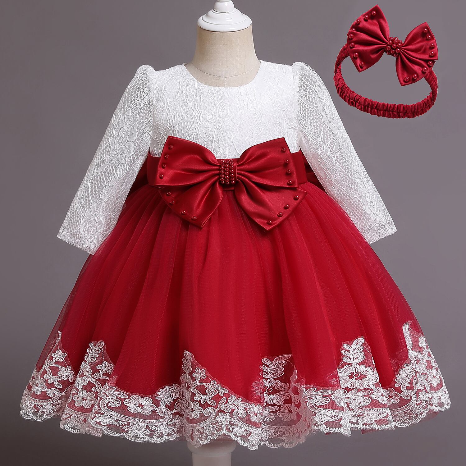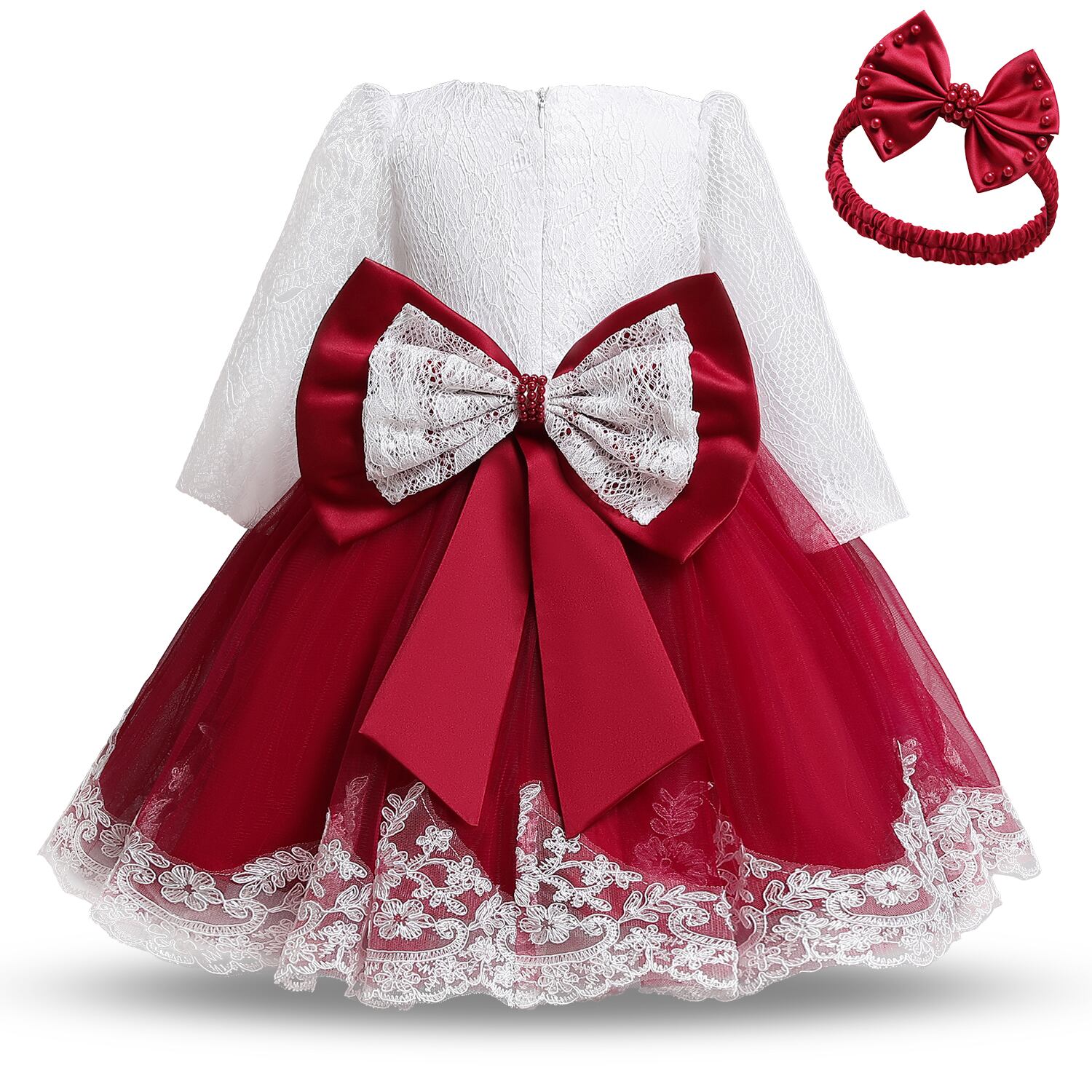 24M ベビーレッドクリスマスベビーガールズドレス新生児秋冬長袖洗礼ガウン幼児年