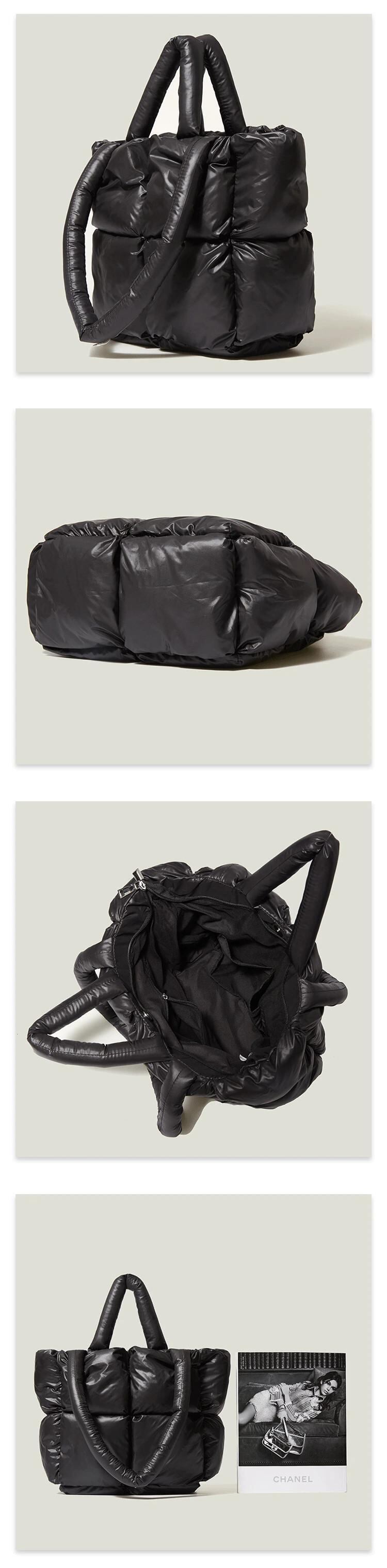 ラージトートパッド入りハンドバッグキルティング女性ショルダーバッグ高級ナイロンダウンコットンクロスボディバッグ冬の財布 2022