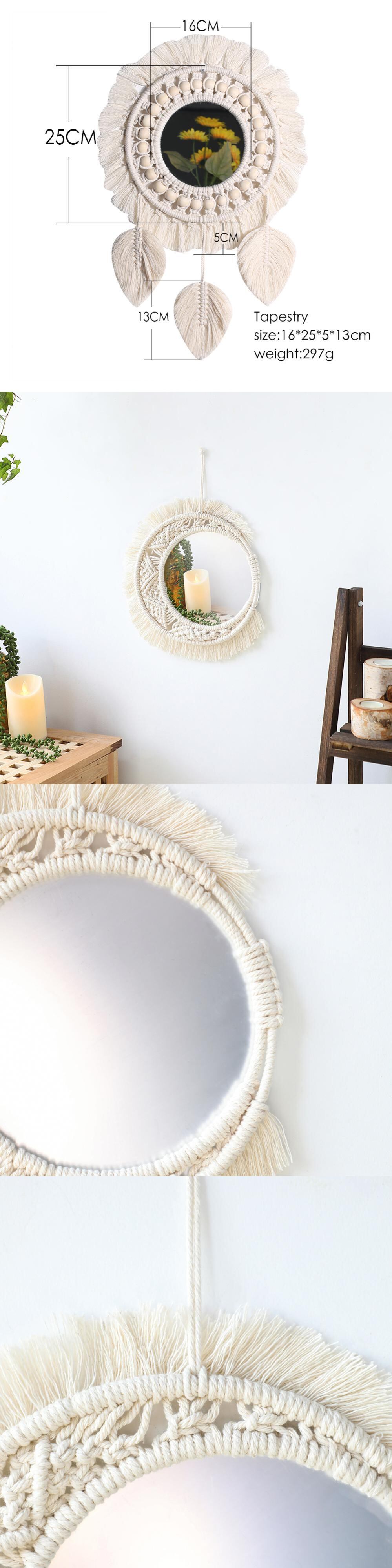 自由奔放に生きるマクラメラウンドミラー装飾ミラー美的部屋の装飾ぶら下げ壁ミラー寝室リビングルームの家の装飾