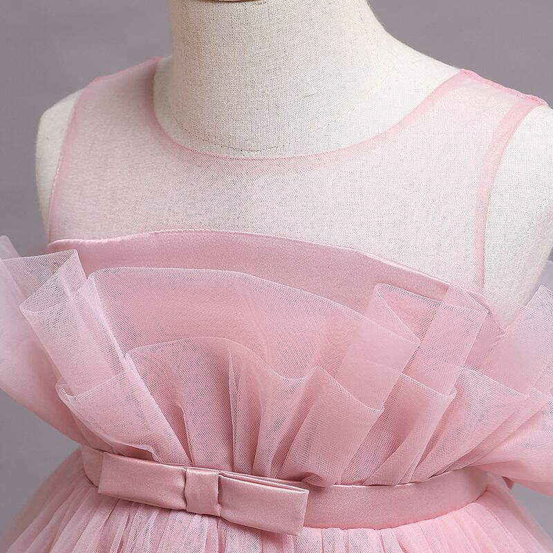 赤ちゃん 1st 誕生日パーティードレス女の子無地子供の結婚式のイブニングドレスノースリーブ夏チュールチュチュドレス