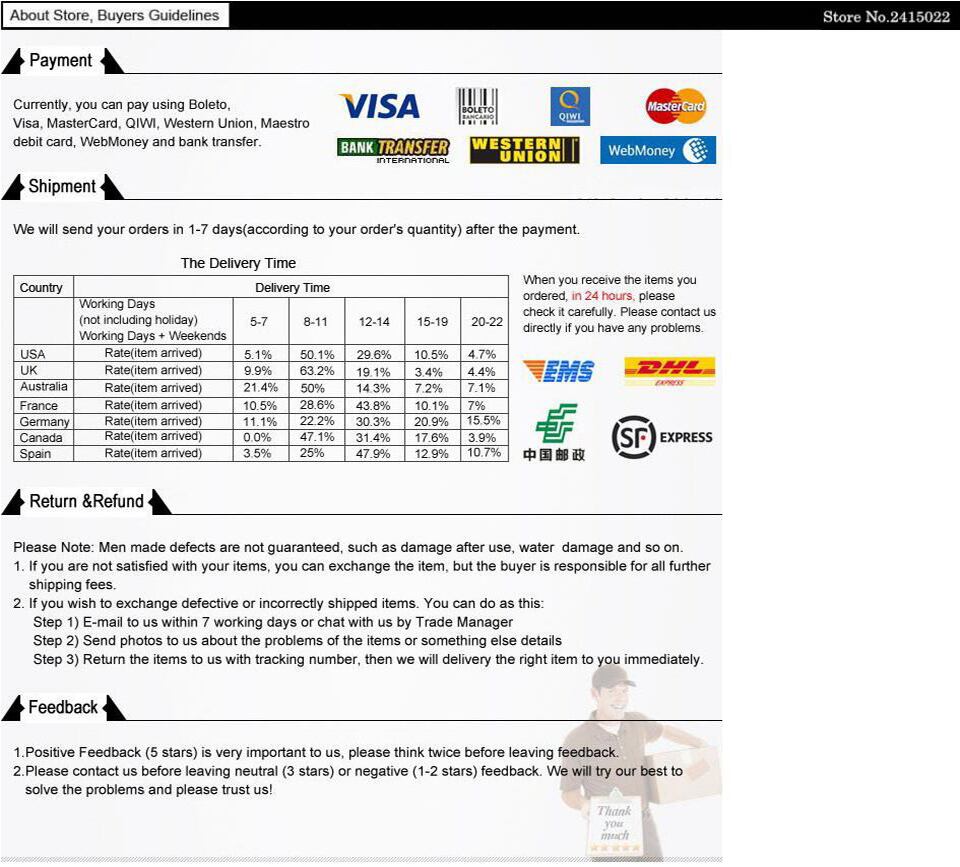 商品到着後のサイズ変更やカラーやイメージが違う等、 落札者様の都合での商品交換、返品は一切お受けしておりません。