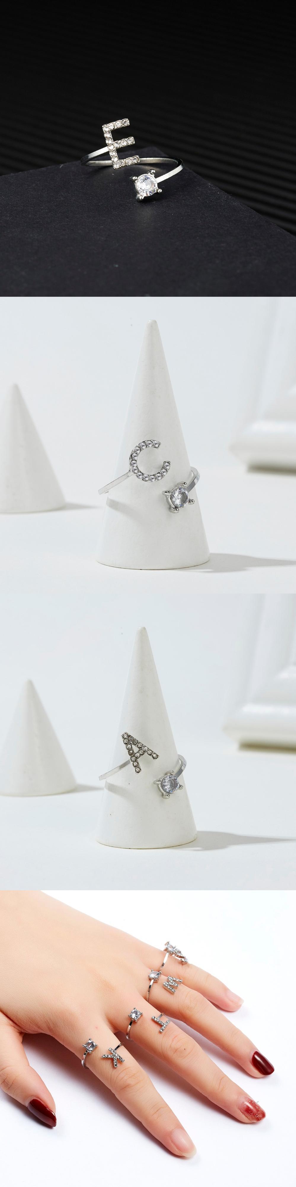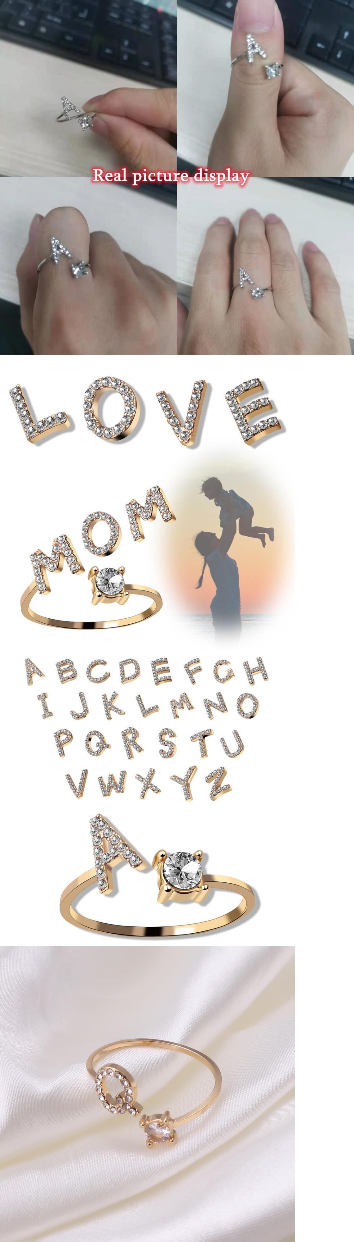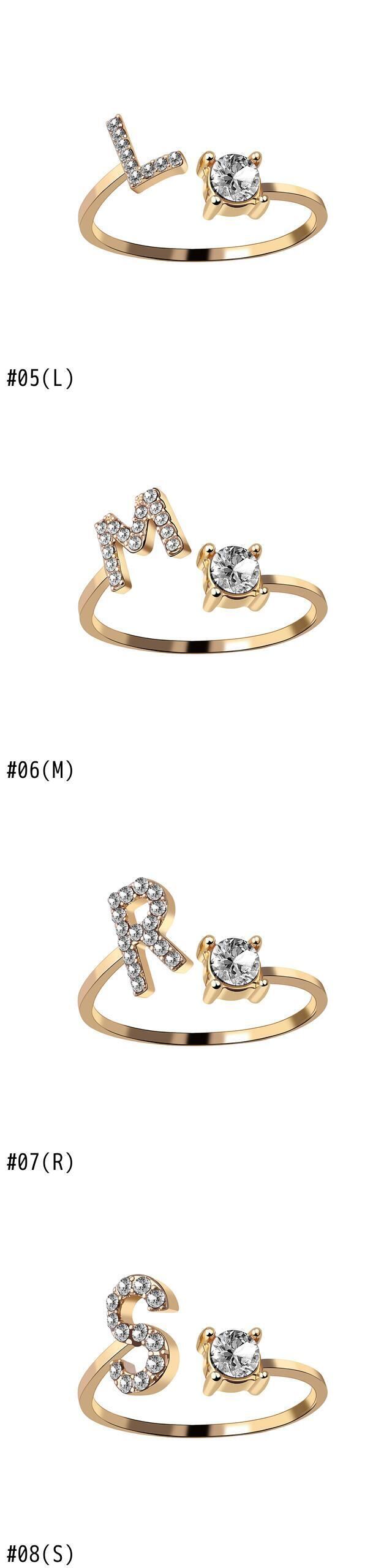 A-Z 文字調節可能なオープニングリング女性カップルアルファベット名男性イニシャルリング男性結婚式指ジュエリー anillos mujer