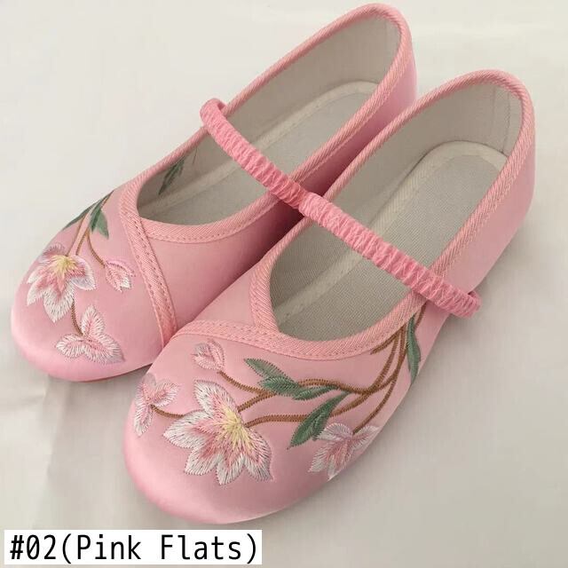 花刺繍女の子バレリーナバレエフラットシューズ中国韓服子供ドレスシューズカーニバルフェスティバルシングルフラット