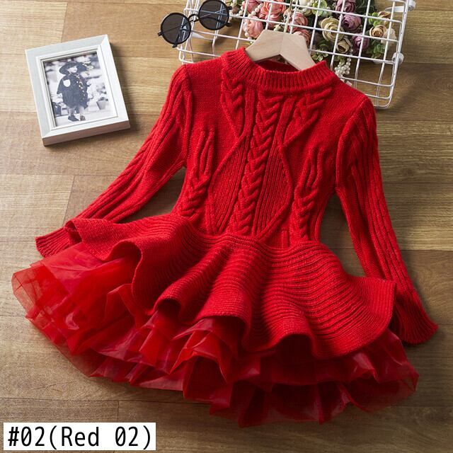 女の子の冬のニットドレス 3-8 歳の子供の誕生日パーティーチュールチュチュガウン女の赤ちゃん秋綿長袖スキエンカ