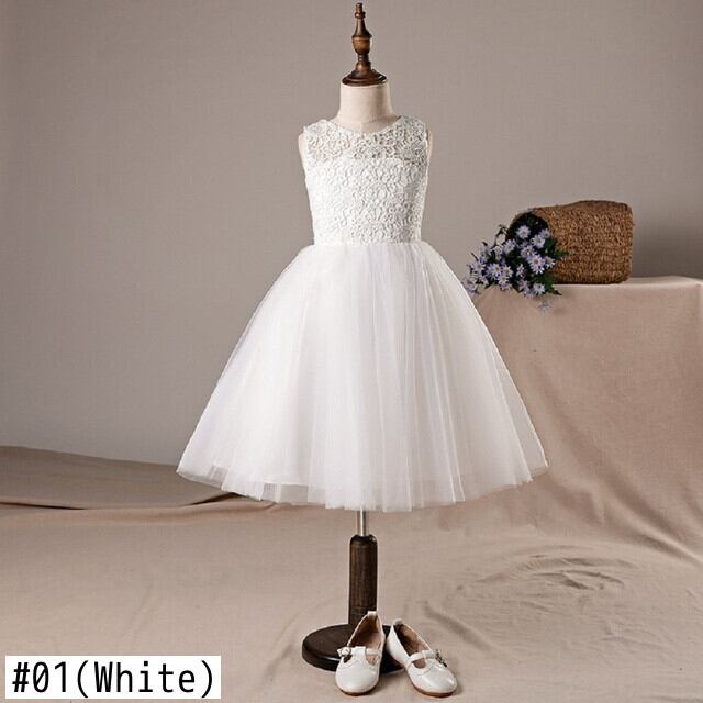 チュール レース ショート フラワー ガール ドレス 2022 ノースリーブ バックレス O ネック ジュニア ブライドメイドドレス ボウ付き