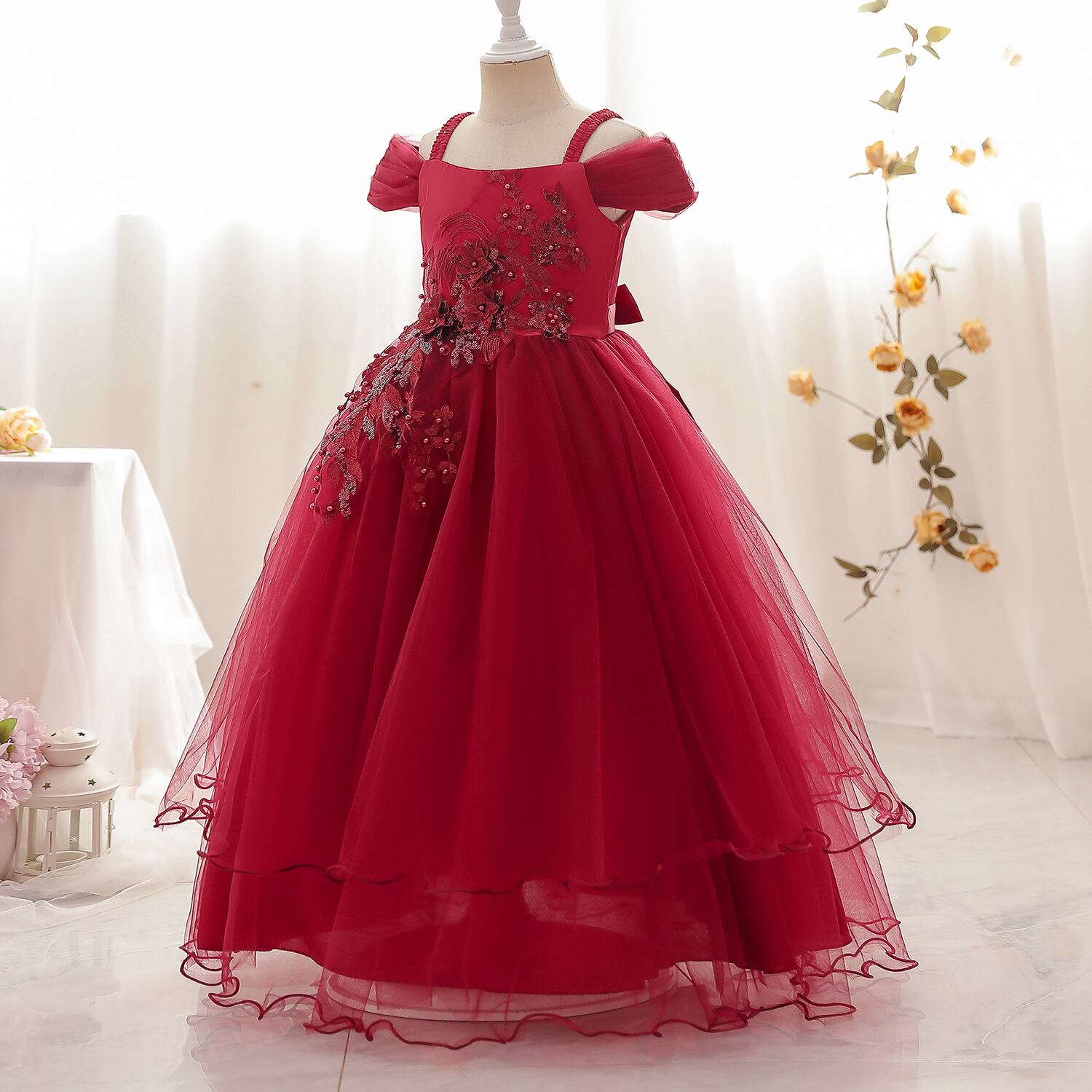 フラワーガールドレス子供アップリケ十代の誕生日ウェディングウエディングドレス子供ページェントイブニングmalドレス