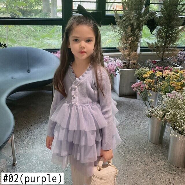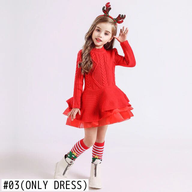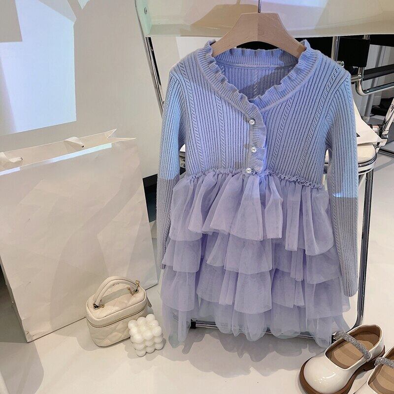 2022 冬のニットセータードレス女の子長袖レイヤードドレス秋の子供の誕生日パーティーガウン