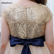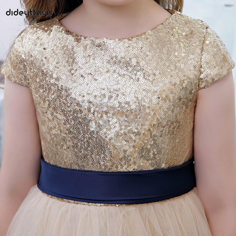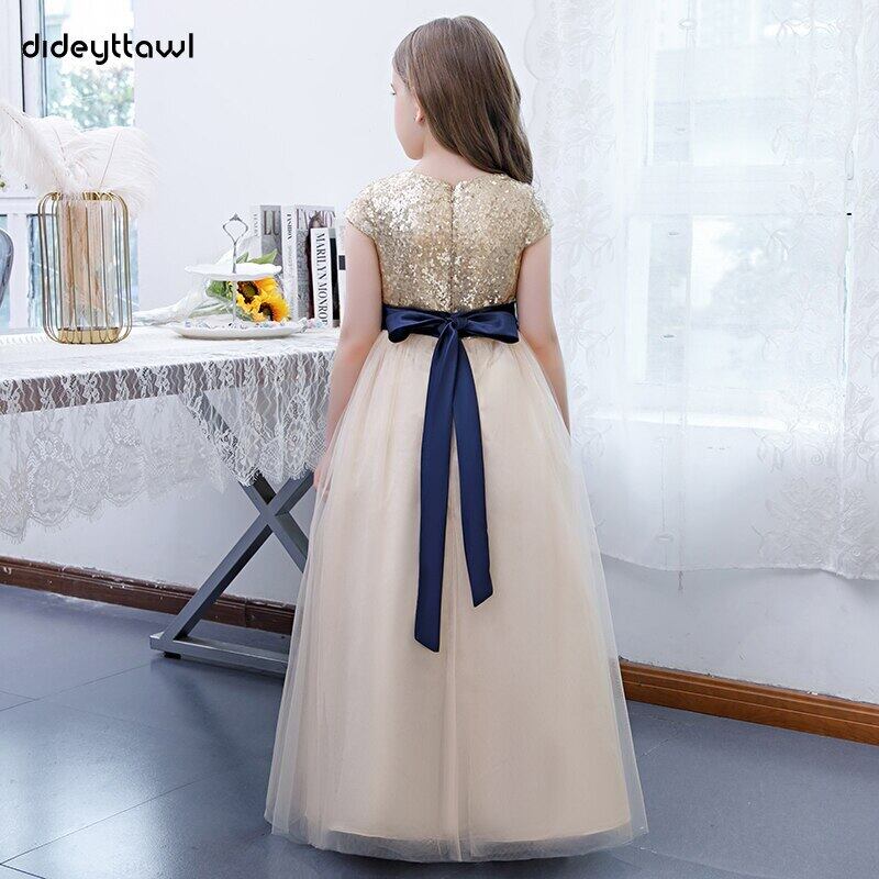 Dideyttawl ロングスパンコールフラワーガールドレスチュール半袖イブニングパーティードレスジュニア花嫁介添人の女の子の誕生日ガウン