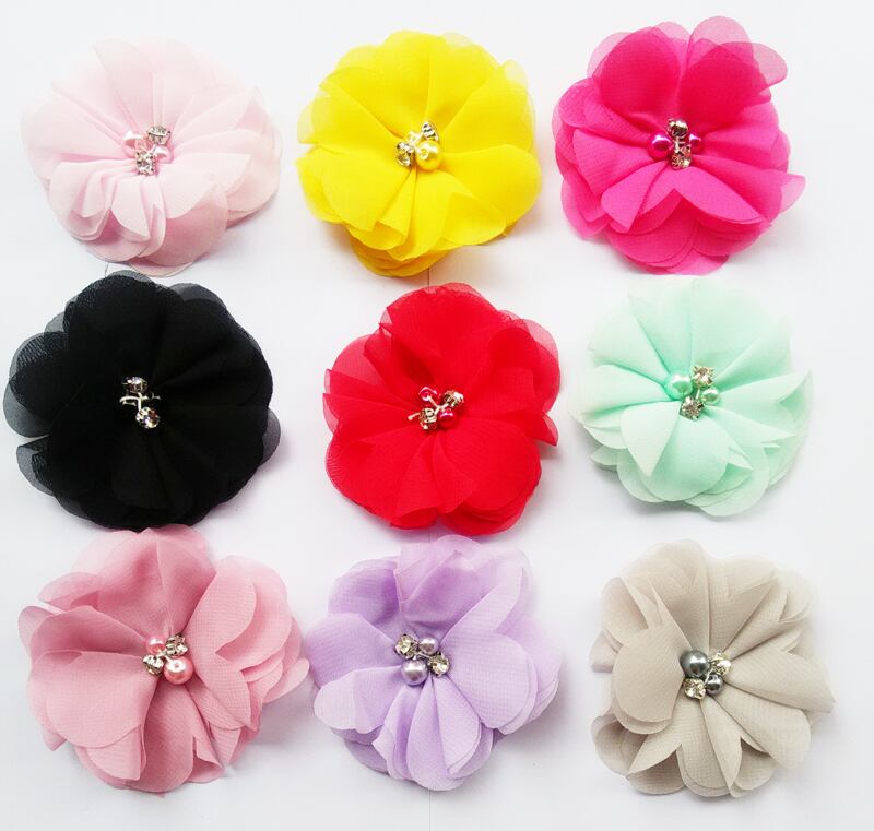 3 "シフォン花ビーズ レース ヘア フラワー ヘッドバンド ヘア アクセサリー 50 個/ロット