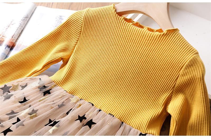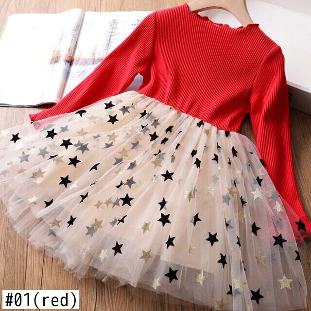 スタープリント子供ドレス女の子春 & 秋長袖子供の誕生日服赤クリスマス女の子冬ドレス