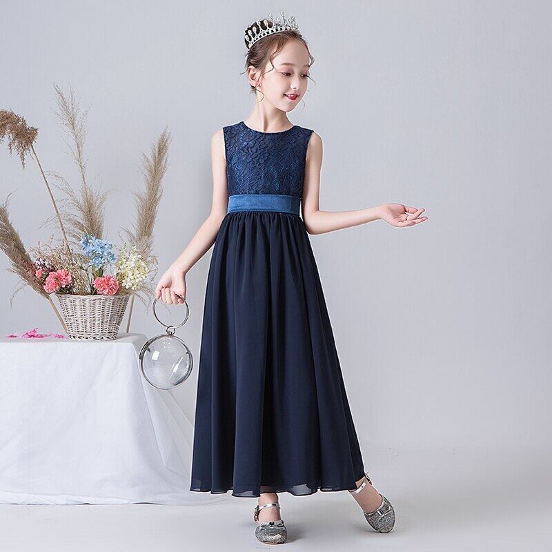 Dideyttawl 紺女の子マルドレスレースシフォン子供の結婚式のイブニングパーティーガウンガールズフラワーガールドレスティーン
