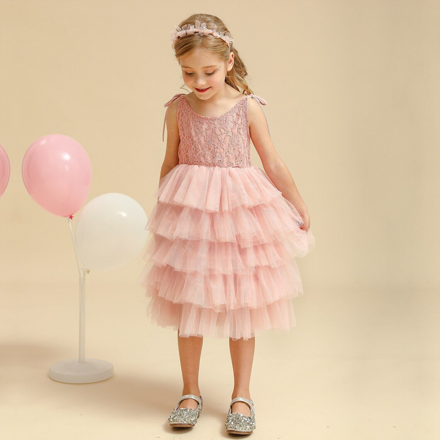 キッズドレス 女の子 ノースリーブ チュチュ サマードレス 3 4 6 8 年 フラワーウェディングパーティーガウン 子供用