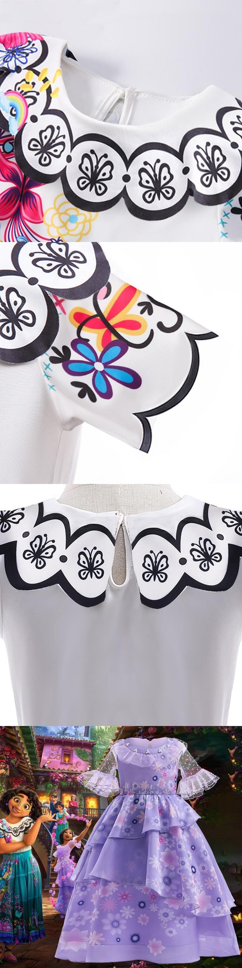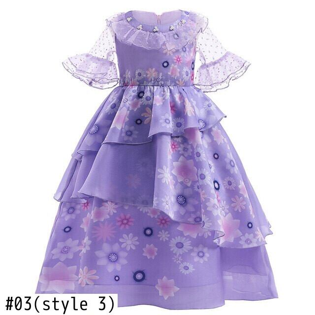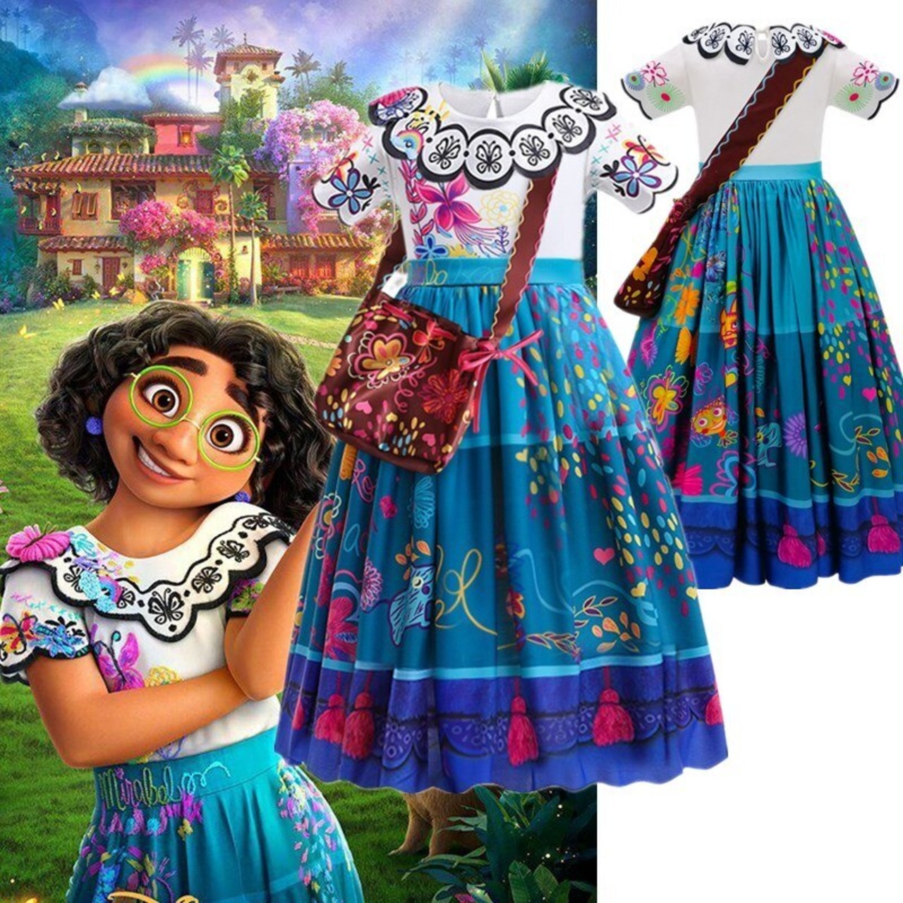 Encanto コスプレガールドレスカーニバルパーティー服花フリルロングドレス Girsl ミラベルドレス