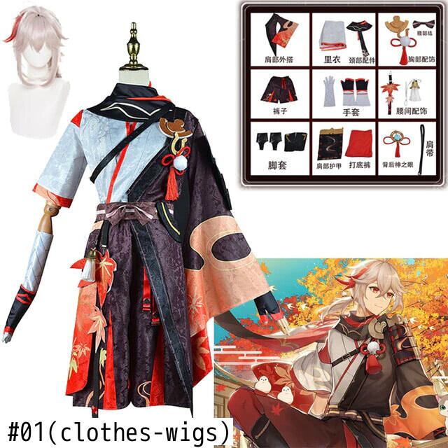 Genshin Impact Kaedehara Kazuha コスプレ カーニバル サムライ ウィッグ レッド Gles