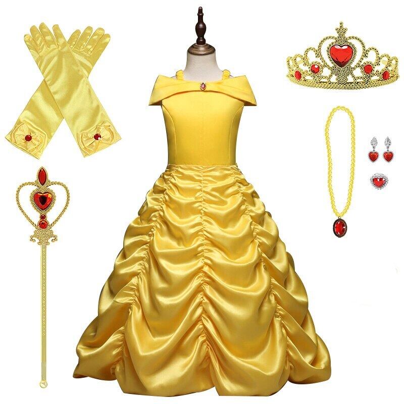 女の子白雪姫ドレスアップ子供パフスリーブ s ロングマント子供パーティー誕生日ファンシーガウン 3-10 歳