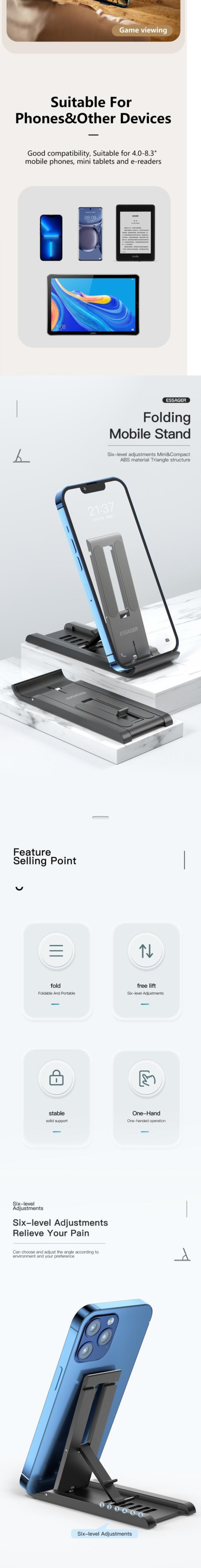 Essager 折りたたみ式タブレット 携帯電話 デスクトップ電話スタンド iPad iPhone Samsung デスクホルダー 調節可能なデスクブラケット スマートフォン