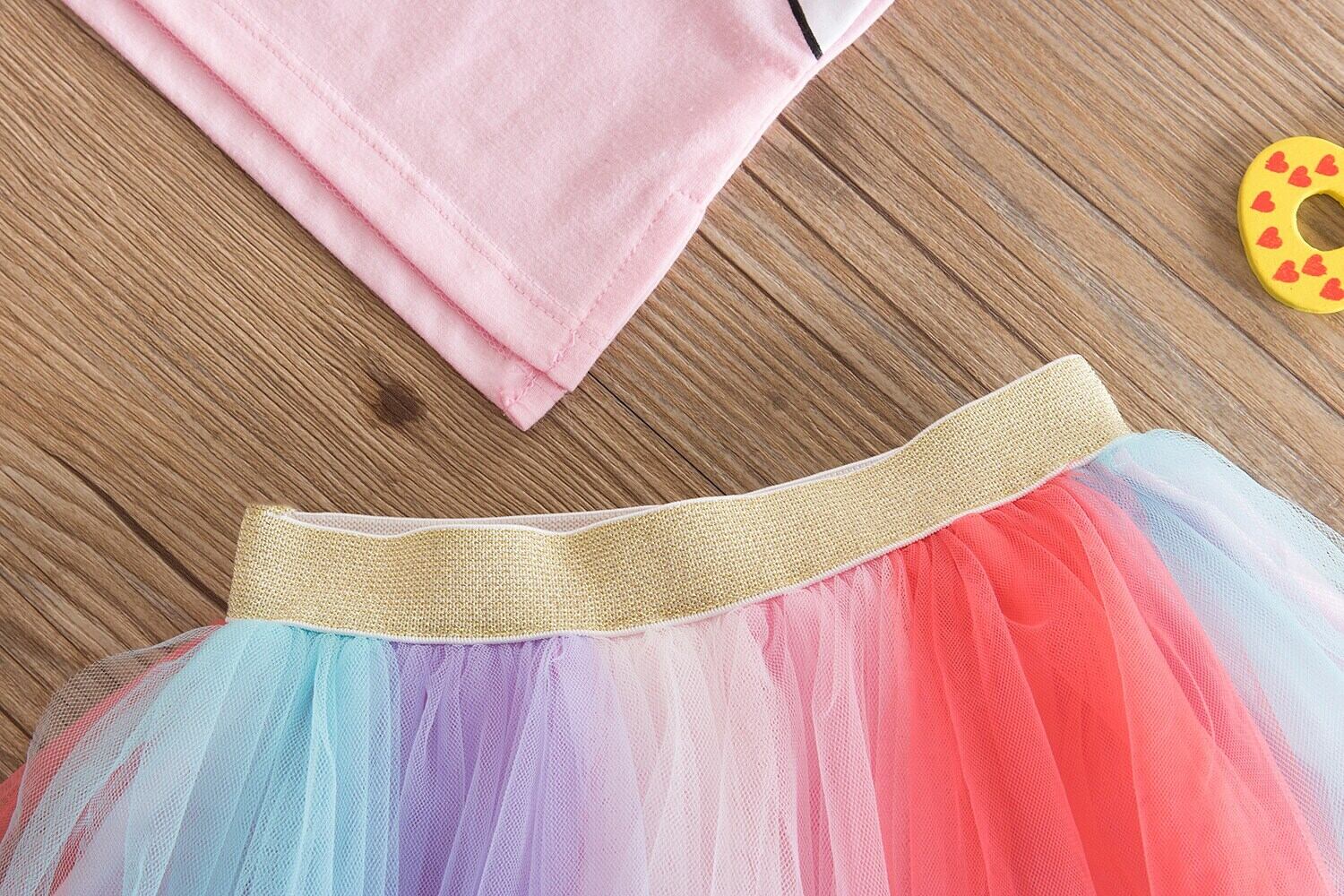 レインボーユニコーン誕生日夏服少女漫画 Tシャツ + チュチュスカート 2 個子供服女の子 2022 セット