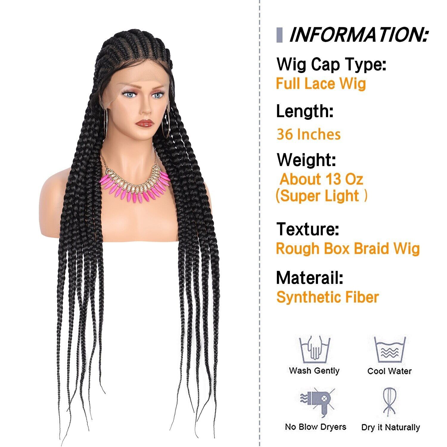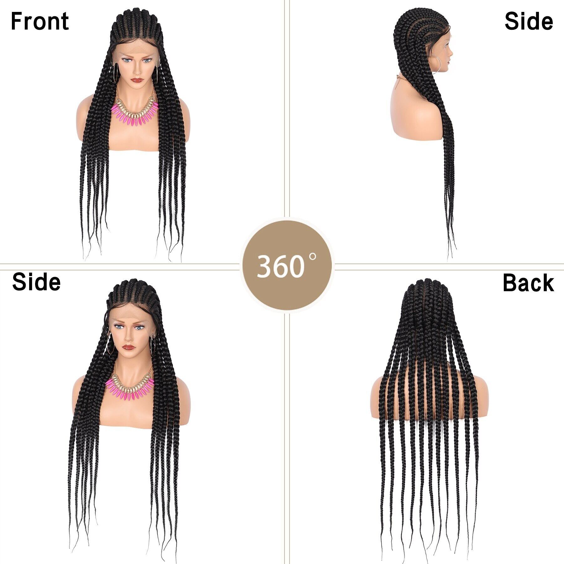 Kalyss 36 "フルレース編組かつらラフコーンローボックス三つ編みかつらベビーヘア黒人女性 SynthetIc 360 レースフロントウィッグ