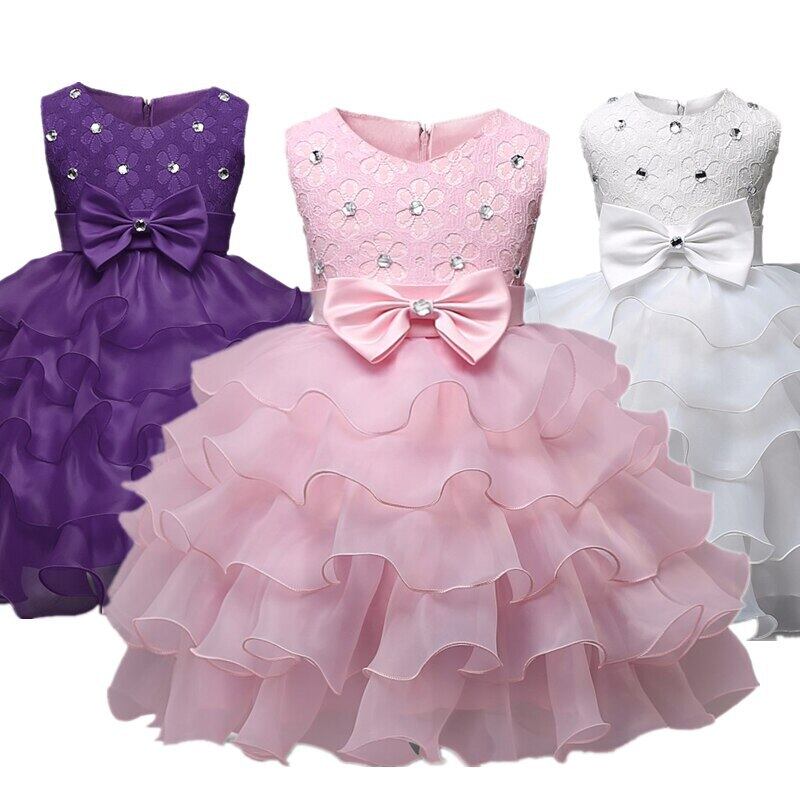 キッズドレスガールズノースリーブウェディングパーティーイブニングチュチュガウン夏の花チュール誕生日レイヤードドレス