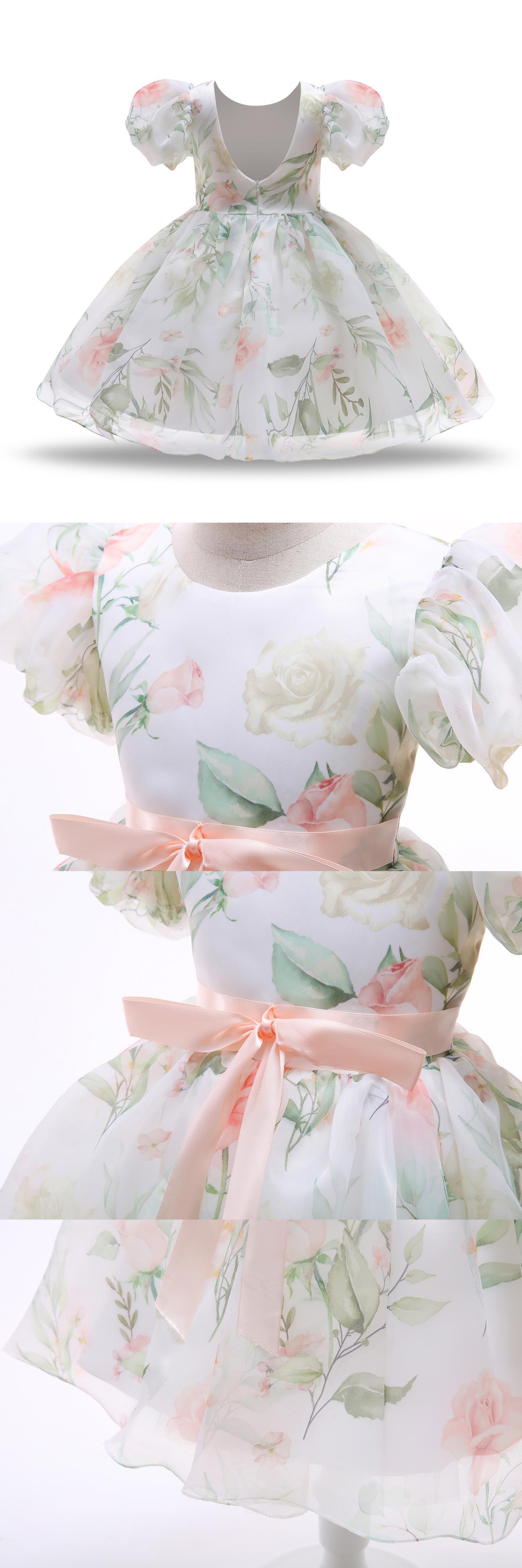 フラワーガールのウェディングドレスホワイト初聖体キッズサマーパフスリーブふわふわ布ベビー誕生日パーティーチュチュガウン