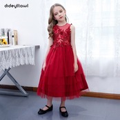 Dideyttawl リアルポス レッド ティーレングス フラワーガールドレス クリスマス 結婚式 誕生日 チュール ティアード パーティードレスガウン