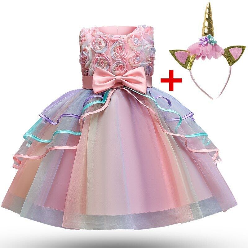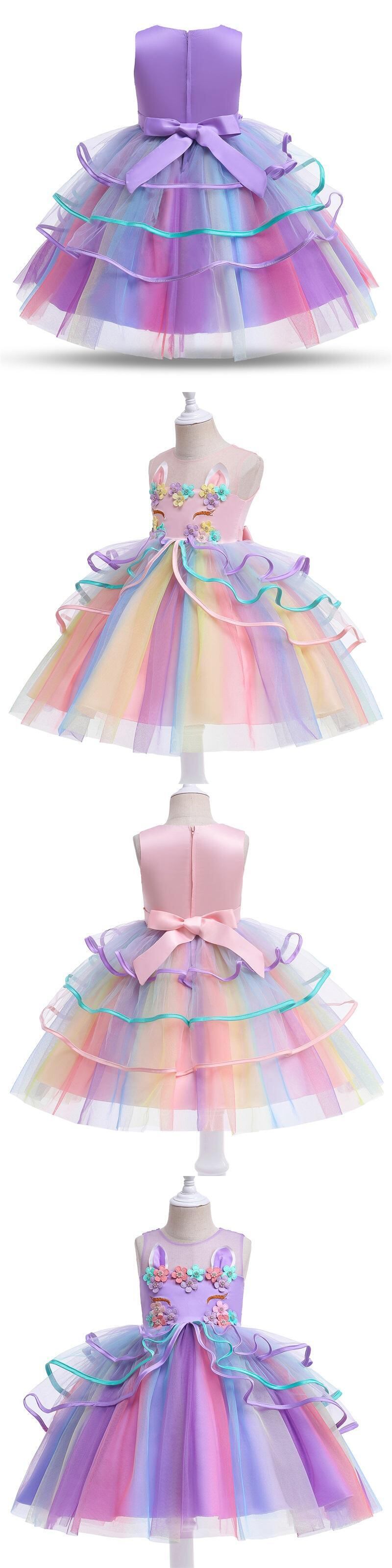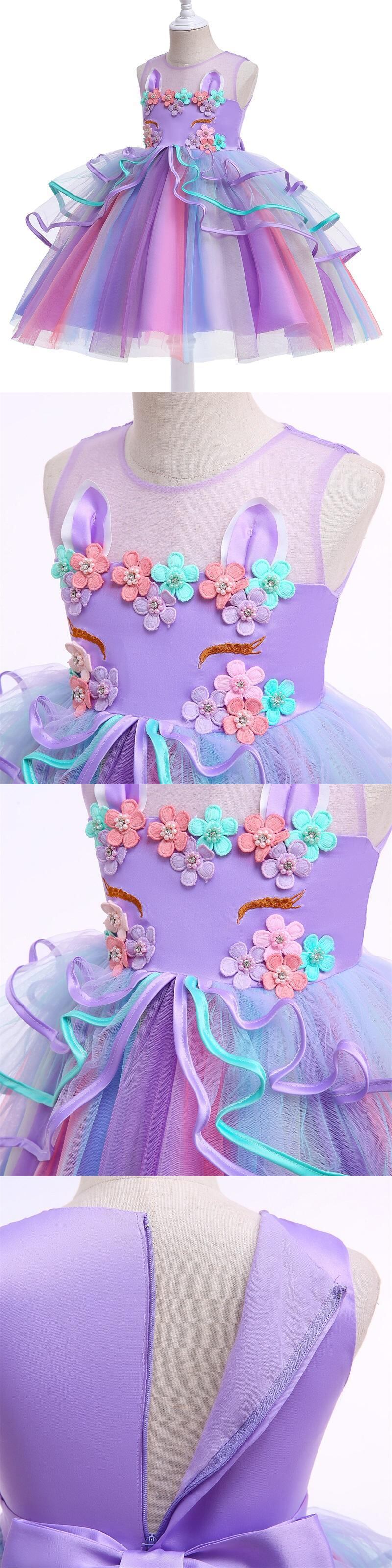 子供の誕生日ユニコーンドレスガールズフラワーチュチュウェディングパーティーガウン刺繍子供ドレス 4-10 歳